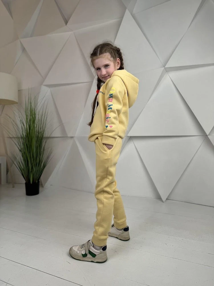 Material: Jersey General size: 110-134 Seazon:Winter Pattern:Graphic Print Clothing decoration:no decoration Size: 110, Bust: 70cm, Length: 43cm, Sleeve Length: 41cm, Hips: 66cm, Height: 110cm, Waist: 46cm, Pants Length: 61cm, Shoulders: 35cm Size: 116, Bust: 72cm, Length: 45cm, Sleeve Length: 44cm, Hips: 68cm, Height: 116cm, Waist: 46cm, Pants Length: 64cm, Shoulders: 36cm Size: 122, Bust: 76cm, Length: 47cm, Sleeve Length: 47cm, Hips: 72cm, Height: 122cm, Waist: 50cm, Pants Length: 68cm, Shoulders: 38cm Size: 128, Bust: 78cm, Length: 49cm, Sleeve Length: 50cm, Hips: 74cm, Height: 128cm, Waist: 50cm, Pants Length: 72cm, Shoulders: 39cm Size: 134, Bust: 80cm, Length: 51cm, Sleeve Length: 52cm, Hips: 76cm, Height: 134cm, Waist: 52cm, Pants Length: 76cm, Shoulders: 40cm The set for girls consists of a sweater and pants, providing maximum comfort and style for everyday wear. The soft and pleasant-to-touch fabric is gentle on the skin, while the well-thought-out cut allows free movement. Perfect for active play, walks, or staying at home. Easy care ensures the garment remains in good condition after multiple washes.