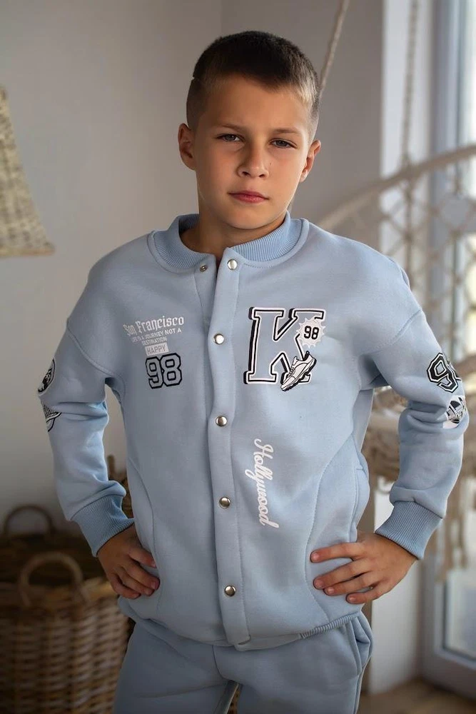Material: Jersey General size: 110-134 Seazon:Winter Pattern:Graphic Print Clothing decoration:no decoration Size: 110, Bust: 76cm, Top Length: 47cm, Sleeve Length: 45cm, Hips: 62cm, Pant length: 61cm, Waist: 48cm, Height: 110cm, Shoulder: 38cm Size: 116, Bust: 78cm, Top Length: 49cm, Sleeve Length: 47cm, Hips: 66cm, Pant length: 65cm, Waist: 50cm, Height: 116cm, Shoulder: 39cm Size: 122, Bust: 80cm, Top Length: 51cm, Sleeve Length: 51cm, Hips: 70cm, Pant length: 69cm, Waist: 50cm, Height: 122cm, Shoulder: 40cm Size: 128, Bust: 82cm, Top Length: 53cm, Sleeve Length: 54cm, Hips: 74cm, Pant length: 73cm, Waist: 52cm, Height: 128cm, Shoulder: 41cm Size: 134, Bust: 84cm, Top Length: 55cm, Sleeve Length: 46cm, Hips: 78cm, Pant length: 76cm, Waist: 52cm, Height: 134cm, Shoulder: 42cm Define your boy's style with our exclusive suit! It is not just clothes, it is the embodiment of individuality and sophistication. Designed for those who value comfort and quality. Thanks to its unsurpassed design and excellent material quality, this suit will become an irreplaceable element of your little one's wardrobe. Order now and make his day special!