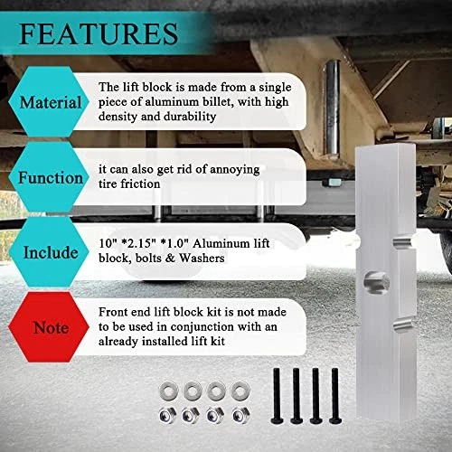 Menu 1. We require immediate payment. 2. We currently accept payment via eBay managed payments only. 3. Once payment is cleared, we will dispatch your shipment within 1-3 business days. Please refer to the "Shipping" tab for more information regarding shipping speed to your destination. Golf Cart Low Pro Front End Lift Block Kit for Club Car Product description 【Scope of Application】The kit Fits Club Car DS Golf Carts Gas & Electric 【Material】The lift block is made from a single piece of aluminum billet, with high density and durability 【Function】Club car front end lift block is designed to slightly lift the front end of your cart so that you can fit most 12 or 14 inch golf cart wheels.At the same time, it can also get rid of annoying tire friction 【Package Include】10" *2.15" *1.0" Aluminum lift block, bolts & Washers. 【Note】Front end lift block kit is not made to be used in conjunction with an already installed lift kit PLEASE MESSAGE US IF YOU HAVE ANY OTHER QUESTIONS, AND MANY THANKS FOR READING ALL OF THIS. Copyright ©#. All Rights Reserved.