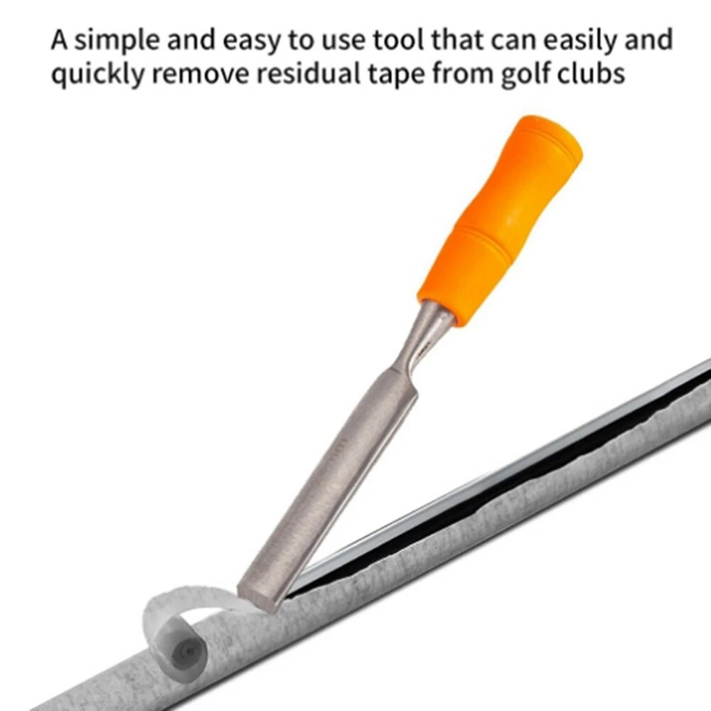 Club Grip Tape Remover Tool - Easy Removal of Adhesive for Club Grips - 1573 Effortlessly remove old adhesive and grip tape from golf club handles with the Golf Club Grip Tape Remover Tool. This tool is designed to make grip replacement and repair a breeze, ensuring a clean and efficient process. The designed curved blade fits the golf grip shaft and easily peels off the residual tape, saving you time It is suitable for almost all golf grips and not cause damage to graphite/steel shafts Use: Golf Club Grip Tape Removal Material: steel + plastic color: As Shown Package Contents: 1 x Golf Club Grip Tape Remover Tool Only the above package content, other products are not included. Note: Light reflection and different displays may cause the color of the item in the picture a little different from the real thing. The measurement allowed error is +/- 1-3cm.