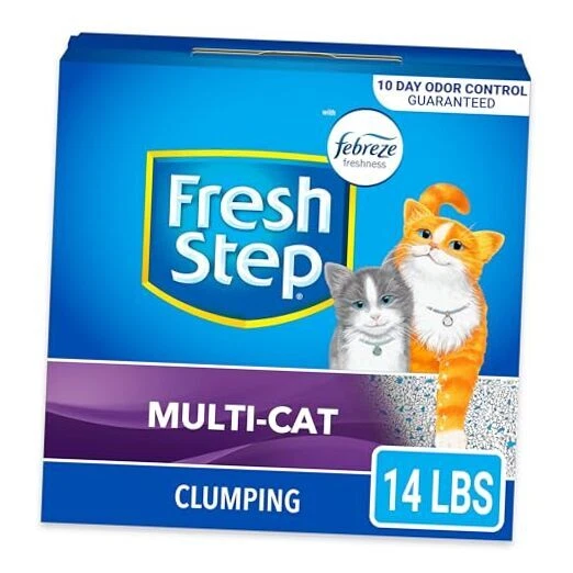 Return Policy Fast Delivery Trusted seller Clumping Cat Litter, Multi-Cat Odor Control, 14 lbs Product Description MULTI-CAT CLUMPING LITTER: Made with larger particles to keep paws and floors clean, and 99.9% dust-free while fighting litter box odors with the power of Febreze in a Fresh Scent; Packaging may vary ODOR CONTROL MULTI-CAT LITTER: Formulated with Ammonia Block Technology, this litter has a 10-day odor control , as it controls bacterial odor growth and keeps ammonia odors away from your litter box and home 99.9% DUST FREE LITTER: Keep surfaces cleaner and the air clearer with this low dust formula; The paw activated litter releases a Febreze freshness scent with each step your cat makes in the litter box SCOOPABLE KITTY LITTER: Clumping litter with ClumpLock technology absorbs liquid and forms tight clumps to minimize the crumbles left behind, making clean up fast and easy CAT LITTER: Fight litter box odors with your cat’s health and happiness in mind; Certain trademarks used under license from The Procter & Gamble Company or its affiliates Shipping Returns Payment Shipping Shipping is FREE to all addresses other than APO/PO boxes in the lower 48 states. All our stock ships from US-based warehouses. Shipped via USPS or UPS (depending on location and package weight) Unless stated otherwise, all orders will ship within 24-72 hours of your payment being processed. Check our feedback to see the great reviews of FAST shipping we offer. Returns Seller does not accept returns Payment We currently accept payment via eBay managed payments only. Once payment is cleared, we will dispatch your shipment within 1-3 business days. Please refer to the "Shipping" tab for more information regarding shipping speed to your destination.