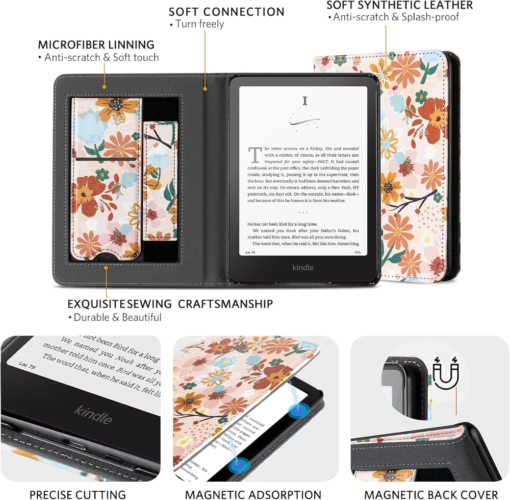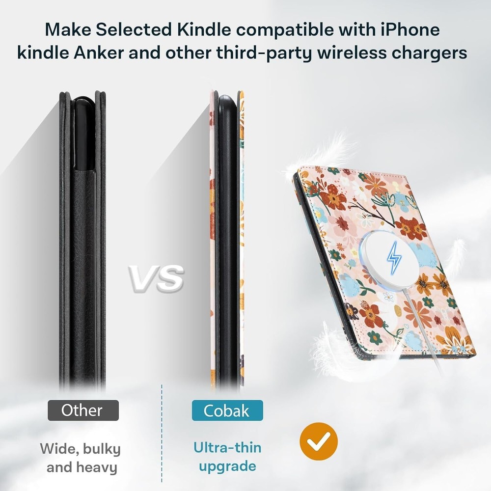 The CoBak Case with stand for Kindle Paperwhite (11th Gen. 2021) in Flowers design is a hard shell stand case specifically designed for e-readers. The product dimensions are 7.01 x 0.39 x 5.04 inches and it weighs 2.12 ounces. The case comes in an upgraded tan jasmine color and is compatible with the latest Kindle Paperwhite model. Perfect for keeping your device safe and secure while also adding a touch of style to your reading experience.