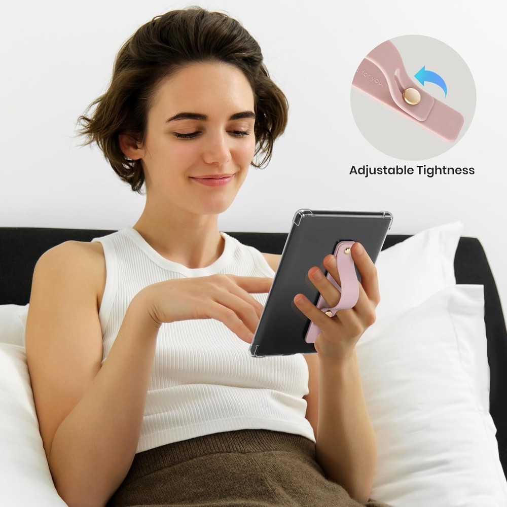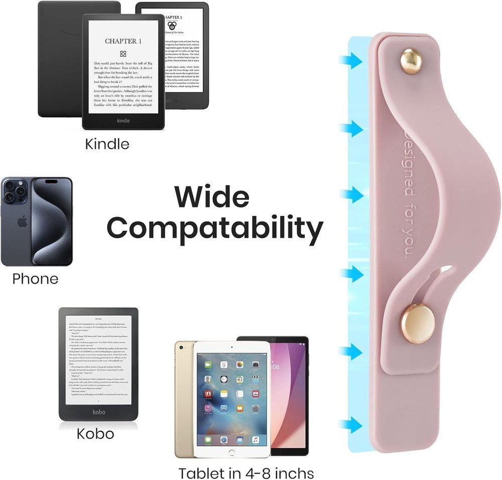 CoBak Hand Strap Holder for Kindle/Tablet - Lightweight TPU One-Handed Pink Product Details Package Dimensions: 5.08 x 1.77 x 0.31 inches Item Weight: 0.704 ounces Manufacturer: CoBak Brand: CoBak Color: Pink Special Feature: Lightweight, Adjustable Material: Thermoplastic Polyurethane (TPU) Grip Type: Strap Grip Multiple Compatibility: This hand strap is suitable for phone, Kindle ebook reader, tablet and other similar digital devices ranging from 4 to 8 inche. As long as the device is in this size range, the grip strap can be used. Note: Product does not include Kindle clear case Excellent Materials: This grip strap is made of high-quality TPU and strong adhesive patch material, and its unique design is small and lightweight to ensure comfortable long-term use. No matter what activity you use your phone, Kindle or tablet for, the grip strap provides stable support, is easy to carry, and doesn't come off easily Personalized Installation: Based on personal preferences, you can choose one or multiple hand straps and stick them to the desired position on your device or device case using the strong adhesive backing. Once securely attached, you can use your device with confidence Two Functions: The grip strap provides a secure one-handed grip for smartphones, Kindle ebook reader, and tablets. It also functions as a hands-free stand for watching on your smartphone, providing convenience for various occasions. Note: The stand up feature is only available on mobile phones, not other digital devices Adjustable Strap: The hand strap has an adjustable tightness that you can adjust according to your hand type and usage habits. Make sure the connection between the hand grip strap and the finger is both strong and comfortable for the best grip experience