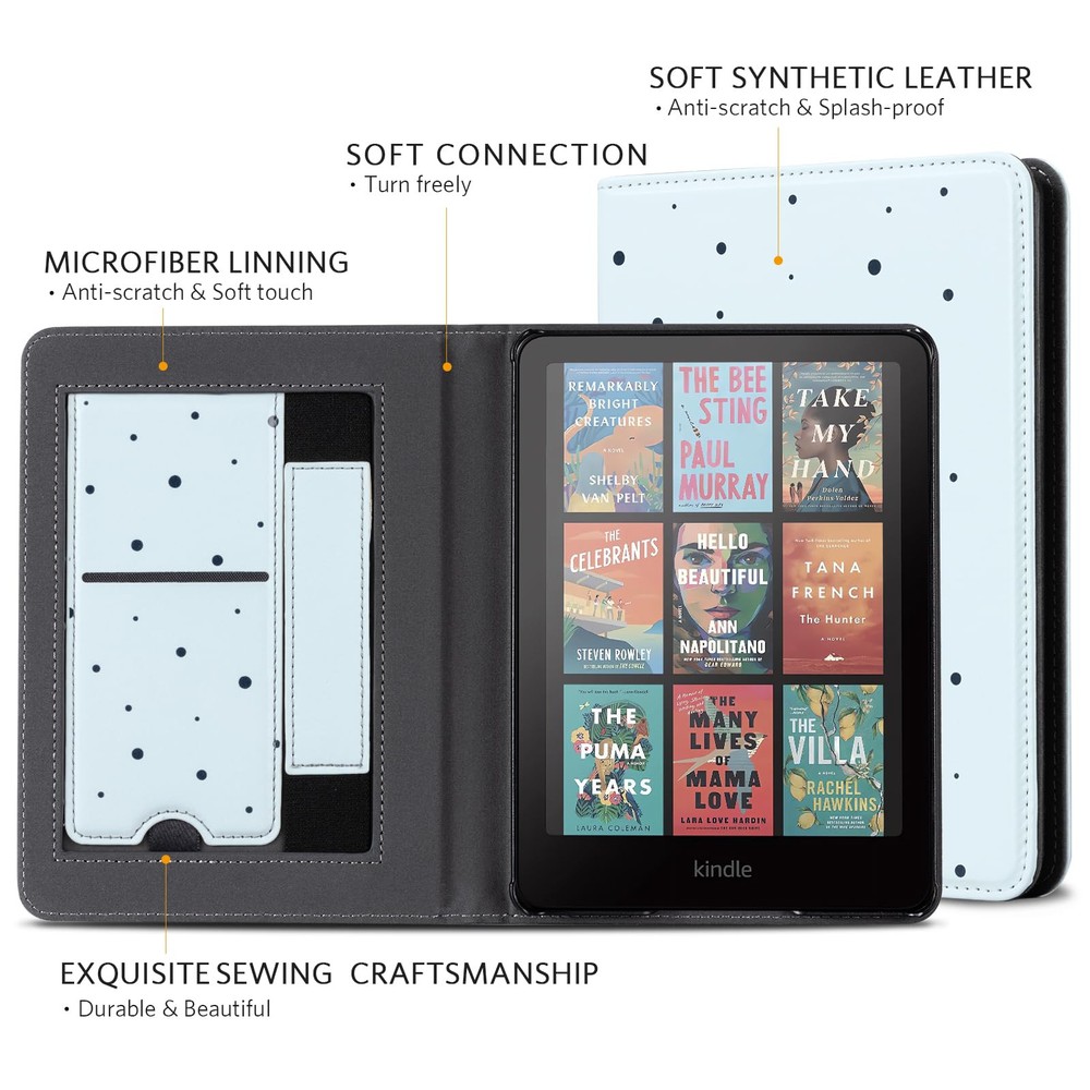Perfect Fit: Our case is expertly designed to fit the all-new Kindle Paperwhite 12th Gen & Kindle Paperwhite Signature Edition 2024 (7") & Kindle Colorsoft Signature Edition (7"), ensuring a snug and secure fit. MATERIAL: Features the premium waterproof PU leather exterior, anti-scratch microfiber interior. This will definitely be a perfect choice of kindle case for you KICKSTAND: Foldable stand design could set your hands free during your reading. Build-in card slot is convenient to store your cards and cashes HAND STRAP: The bulit-in hand strap enables holding a kindle paperwhite in one hand, so you can indulge in the reading without any tiring feeling AUTO WAKE/SLEEP: The magnetic kindle paperwhite case automatically wakes your device when opened and puts it to sleep when closed. And the magnetic closure keeps the cover securely closed, protecting your device from dropping out