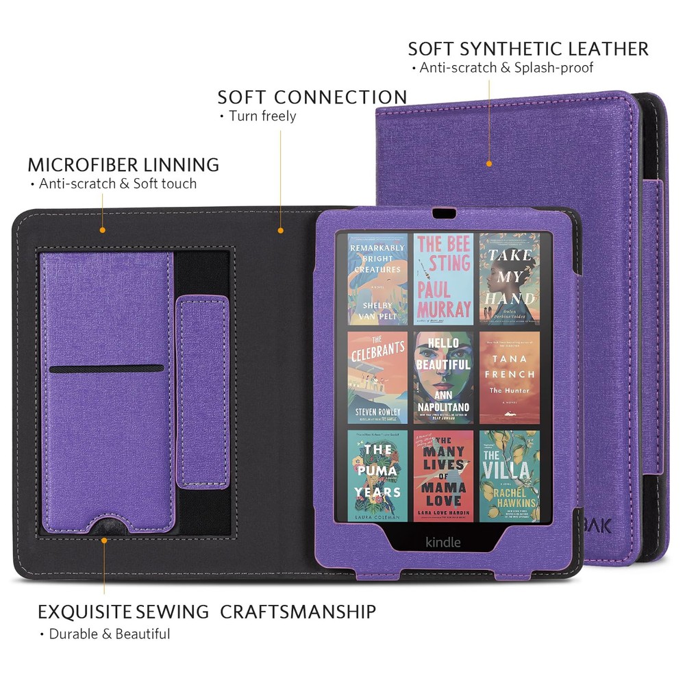 Perfect Fit: Our case is expertly designed to fit the all-new Kindle Paperwhite 12th Gen & Kindle Paperwhite Signature Edition 2024 (7") & Kindle Colorsoft Signature Edition (7"), ensuring a snug and secure fit. MATERIAL: Features the premium waterproof PU leather exterior, anti-scratch microfiber interior. This will definitely be a perfect choice of kindle case for you KICKSTAND: Foldable stand design could set your hands free during your reading. Build-in card slot is convenient to store your cards and cashes HAND STRAP: The bulit-in hand strap enables holding a kindle paperwhite in one hand, so you can indulge in the reading without any tiring feeling AUTO WAKE/SLEEP: The magnetic kindle paperwhite case automatically wakes your device when opened and puts it to sleep when closed. And the magnetic closure keeps the cover securely closed, protecting your device from dropping out