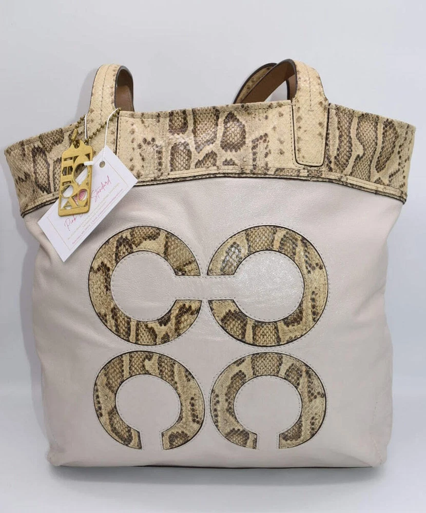 Coach Audrey Slim Tote Bag in Cream & Python Product Details Condition: GUC (Good Used) - General signs of use as shown in photos. Please see the "Conditions" tab on our website for more information about the item condition. Handles with 9" drop 15.5" (top) /12.5" (Bottom) W x 12.75" (H) x 2.5" (W) Leather Interior: one zip pocket, two slip pocket, and one pen pocket Lined Zip closure Coach gold-tone hang tag Gold-Tone Hardware Coach Audrey Slim Tote Bag in Cream & Python Product Details Condition: GUC (Good Uséd) - General signs of use as shown in photos. Please see the "Conditions" tab on our website for more information about the item condition. Handles with 9" drop 15.5" (top) /12.5" (Bottom) W x 12.75" (H) x 2.5" (W) Leather Interior: one zip pocket, two slip pocket, and one pen pocket Lined Zip closure Coach gold-tone hang tag Gold-Tone Hardware × × × × × × × × × × × × × × × Buy now and save! Shipping info Click the Shipping & Payments tab above the listing description for more info Click the Shipping & Payments tab above the listing description for more info! Additional delivery notes PICK UP OPTION Sorry, our items are NOT available for pick-up. PAYMENT Immediate payment is required upon selecting "Buy It Now" or upon checking out through the cart. We accept payment via U.S. PayPal accounts and all Major Credit Cards, Debit Cards & Google Pay. We are legally required to collect sales tax in those states and localities where we maintain a physical presence (nexus). The applicable amount of sales tax charged to an order will be calculated based on the shipment destination's state and local sales tax laws. Thank you for shopping with us on eBay! Additional Information No additional information at this time Ask seller a question You might also like Coach Canvas & Leather Wallet Patricia Nash Avellino Camo Crossbody Bag Dooney & Bourke Canvas Buckle Satchel Bag with Matching Eyewear Sleeve Patricia Nash Avellino Crossbody Bag in Sunflower Print Contact To contact our Customer Service Team, simply click the button here and our Customer Service team will be happy to assist. Ask seller a question © Pink Lemon Standard Shipping & Payments Click the Shipping & Payments tab above the listing description for more info Payment Accepted Payment Methods Immediate payment is required upon selecting "Buy It Now" or upon checking out through the cart. We accept payment via U.S. PayPal accounts and all Major Credit Cards, Debit Cards & Google Pay. We are legally required to collect sales tax in those states and localities where we maintain a physical presence (nexus). The applicable amount of sales tax charged to an order will be calculated based on the shipment destination's state and local sales tax laws. Thank you for shopping with us on eBay! Returns Returns are accepted Items must be returned within 30 days of the auction ending Buyer will pay for return shipping. eBay integration by