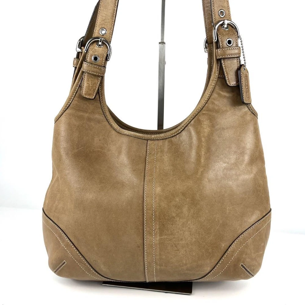 1. This Coach shoulder bag is a gorgeous beige leather piece with minimal signs of wear—perfect for everyday elegance! The spacious design fits essentials comfortably, and the sturdy handle makes it easy to carry. Shipping from Japan was smooth, and the seller’s communication was excellent. Love the vintage charm and quality—highly recommend for a timeless addition to your collection!