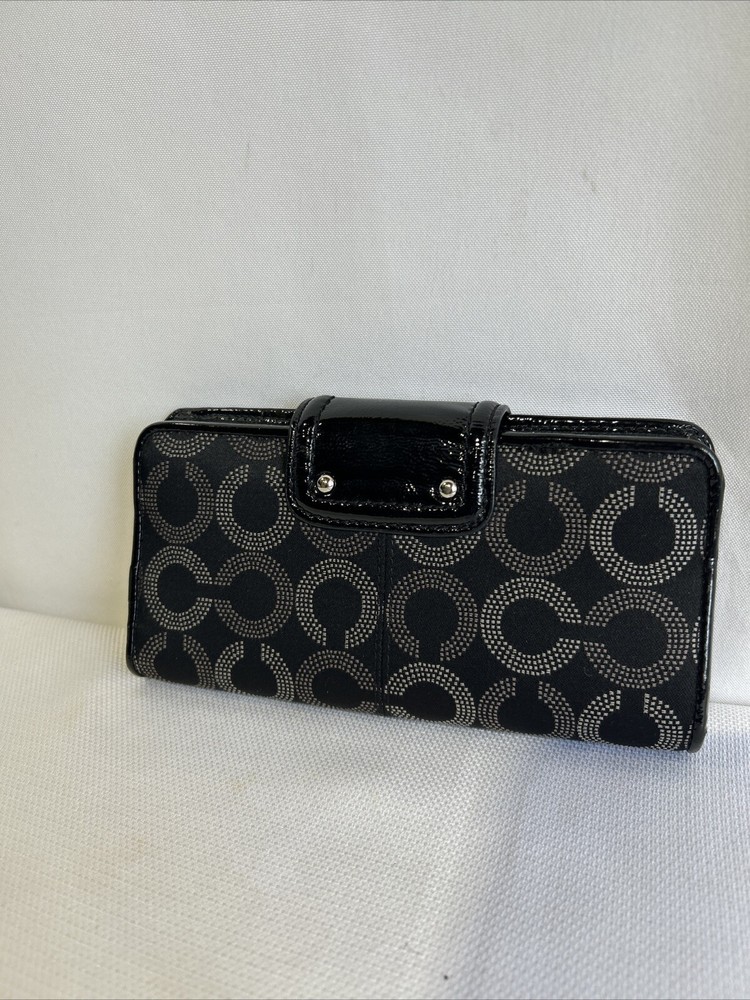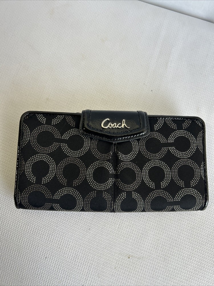 $ 13.2NWT Coach Floral Print Accordion Zip Wallet in Brass and Chalk