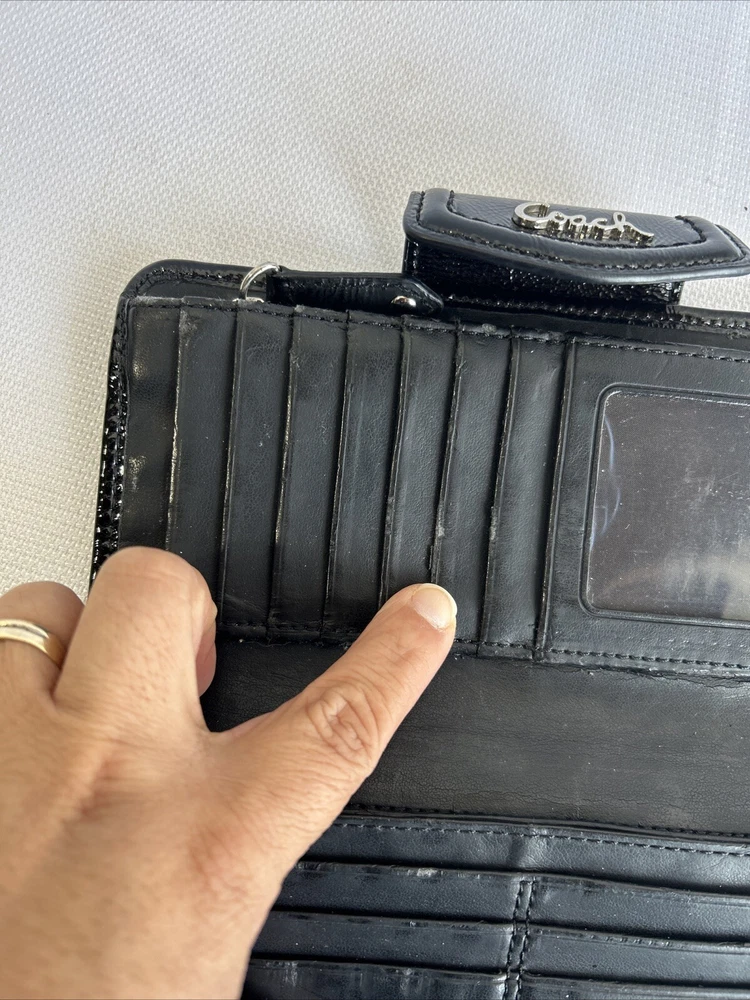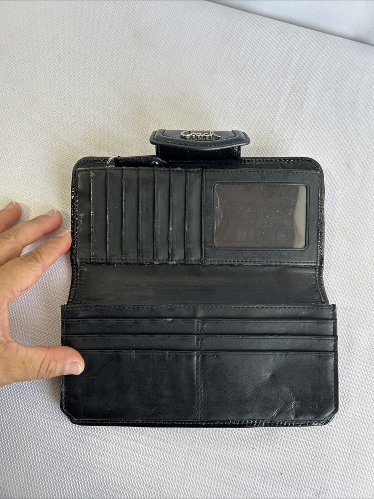 Jimmy Choo Filipa Star Studded Long Leather Zip Wallet Black Silver Pre-Owned
