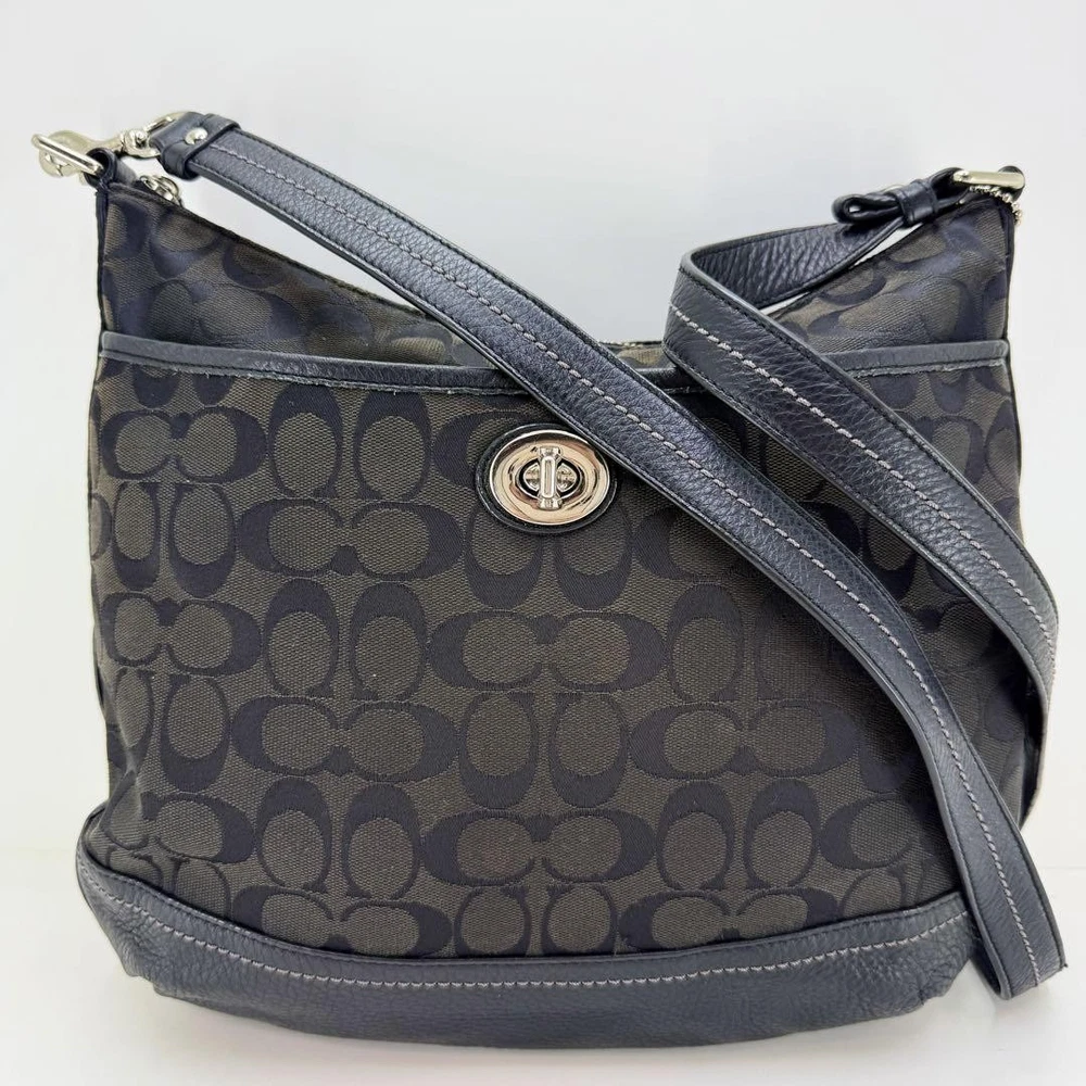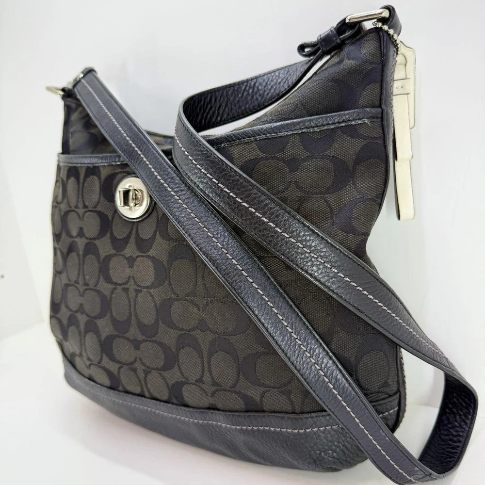 COACH Black Leather Canvas Tote Handbag Preloved Excellent Condition