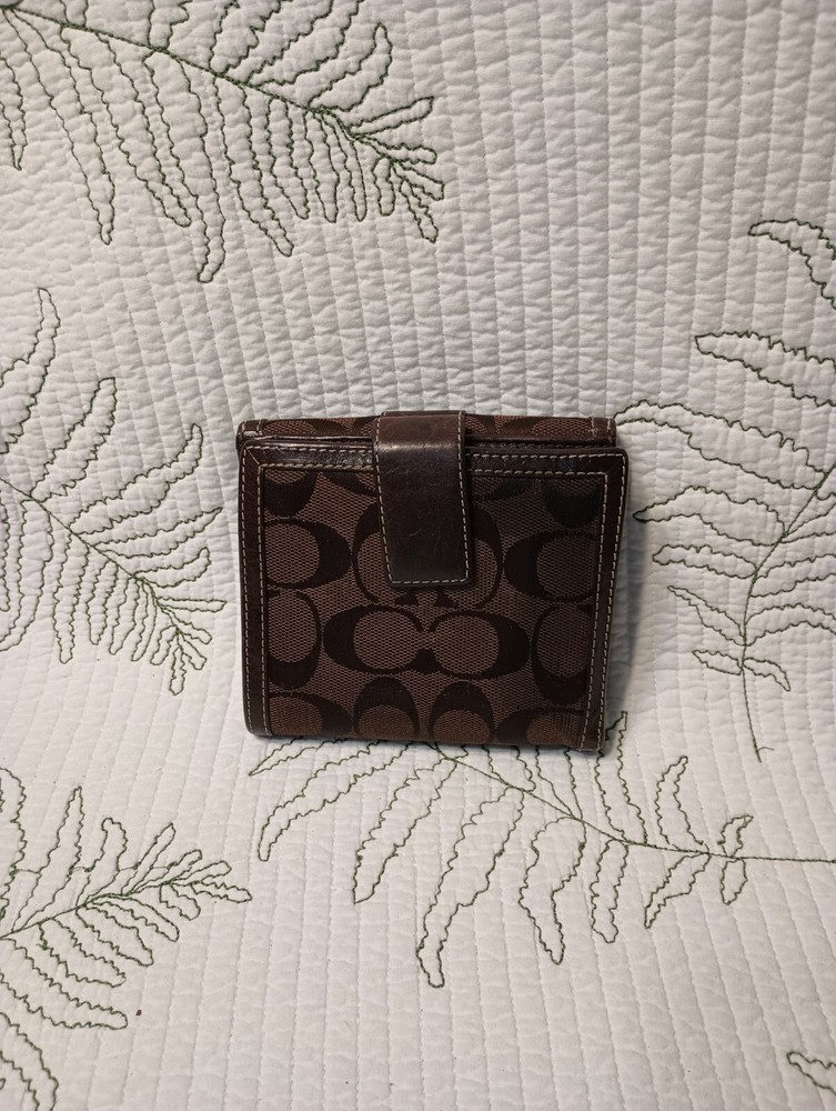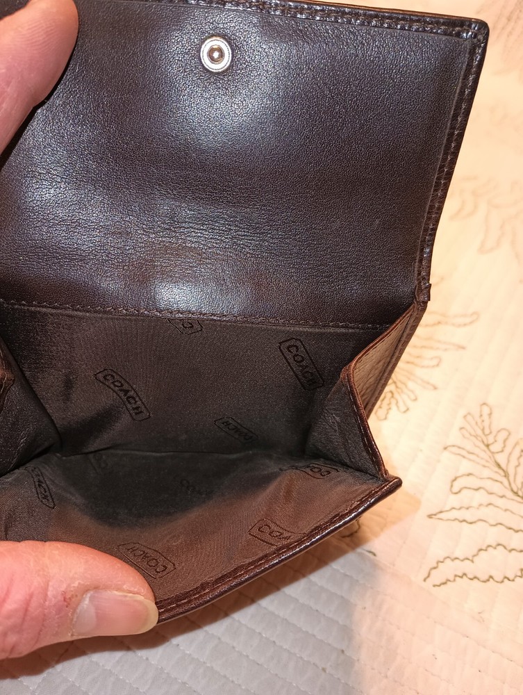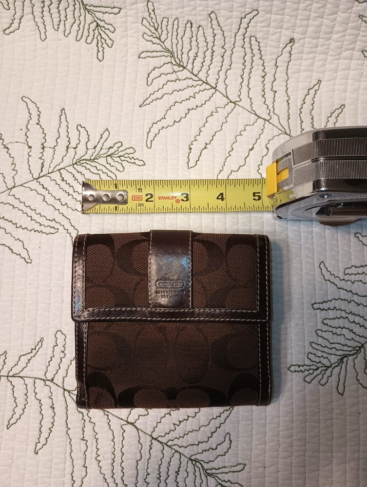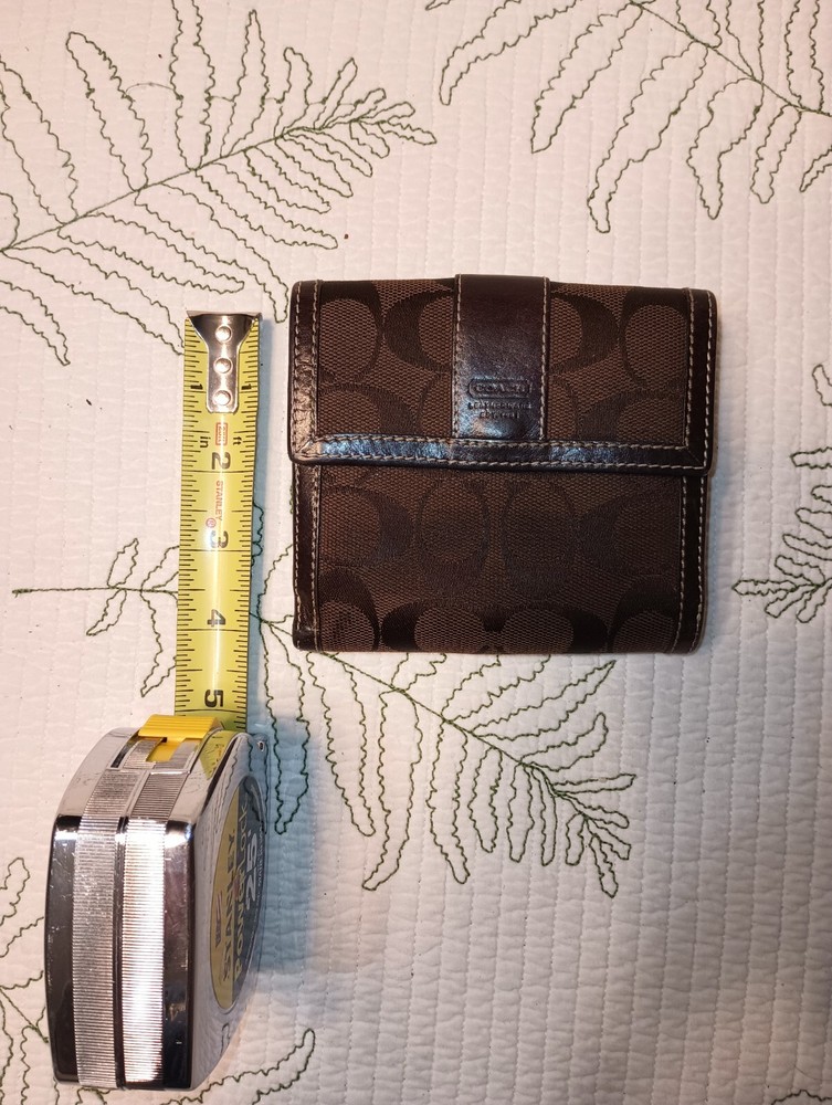 Experience the seamless blend of sophistication and functionality with this Coach women's trifold wallet. Crafted from a rich blend of leather and cotton, it promises durability and a touch of luxury to your everyday essentials. The classic brown hue offers versatility, ensuring it complements any ensemble.This wallet features a well-organized design, perfect for those who appreciate both style and practicality. Handmade with attention to detail, it embodies the quality and craftsmanship synonymous with the Coach brand. Keep your cards, cash, and coins neatly tucked away in this elegant accessory.