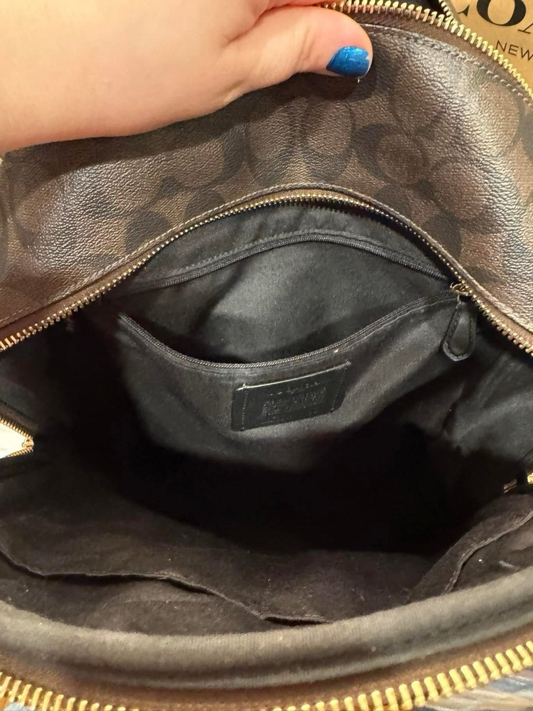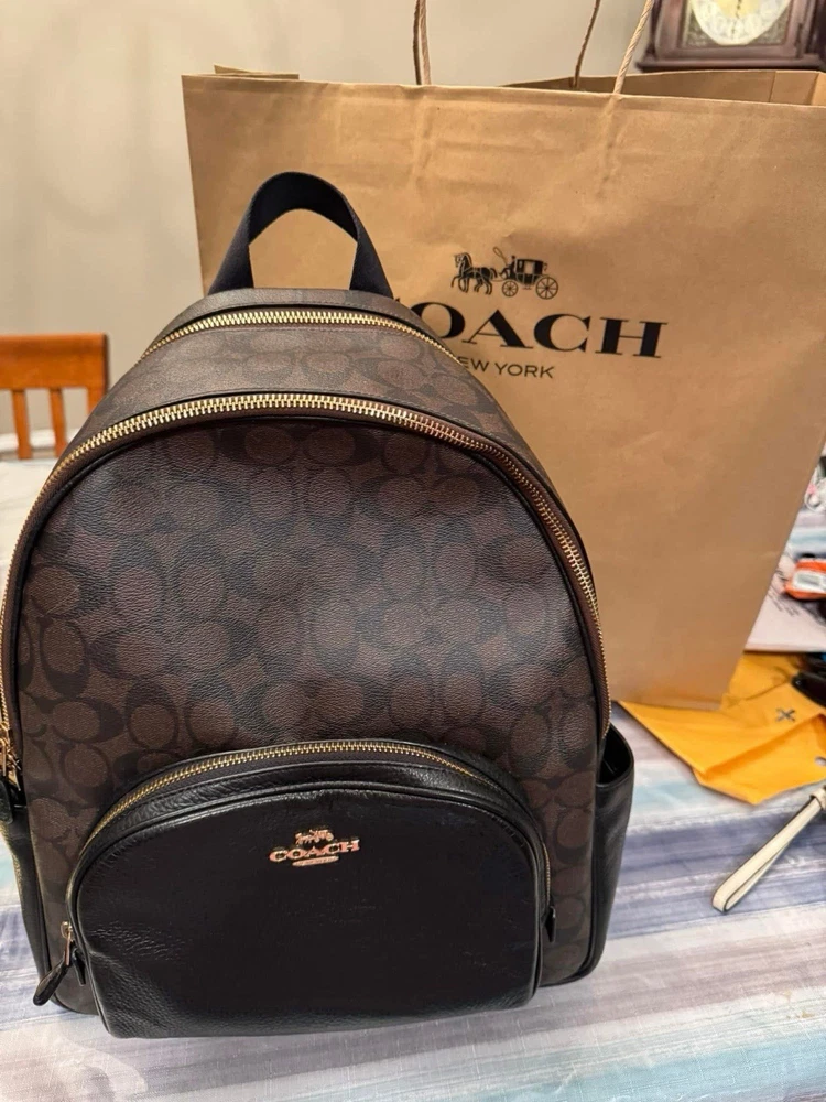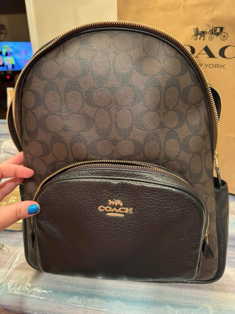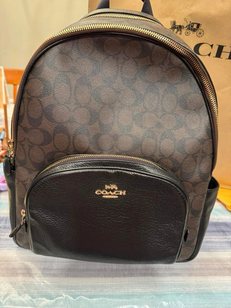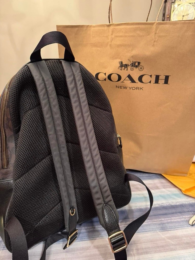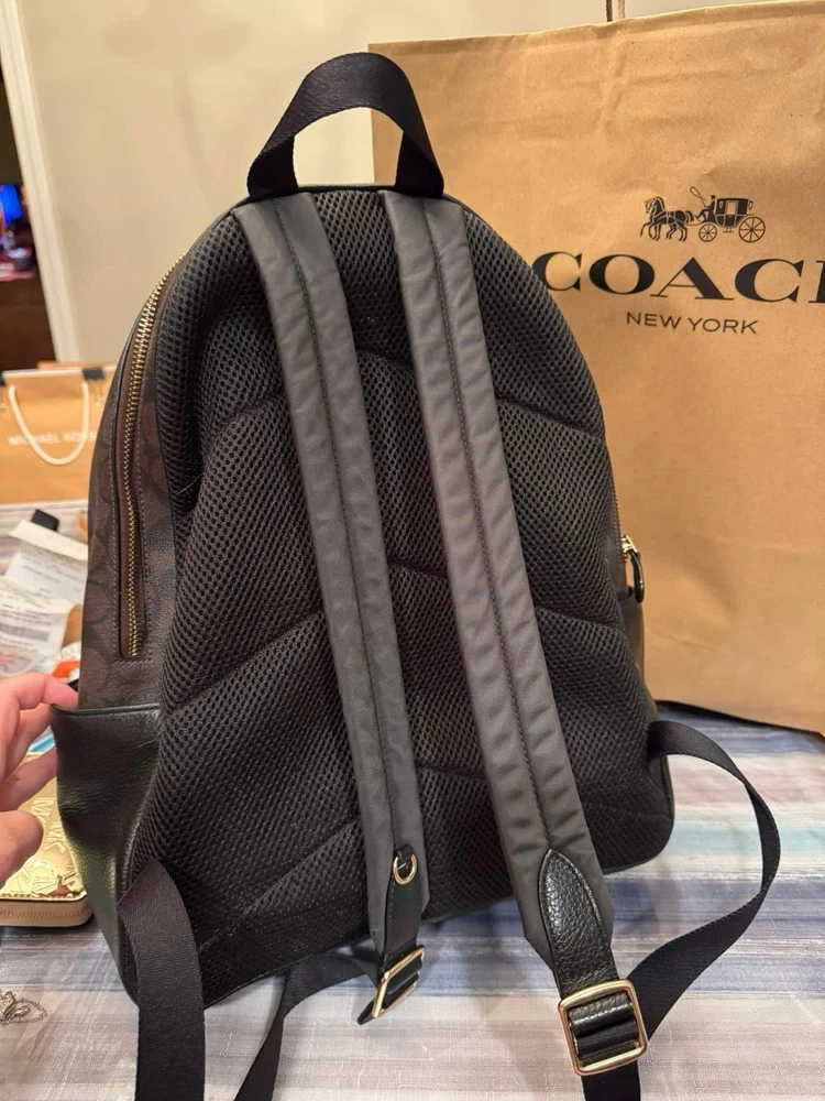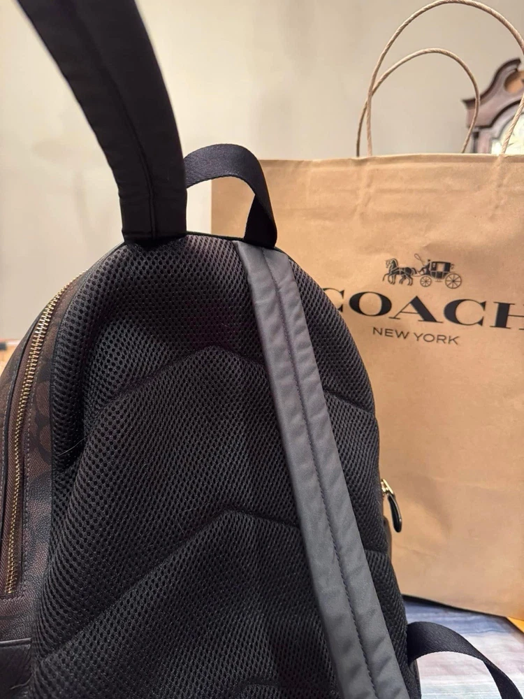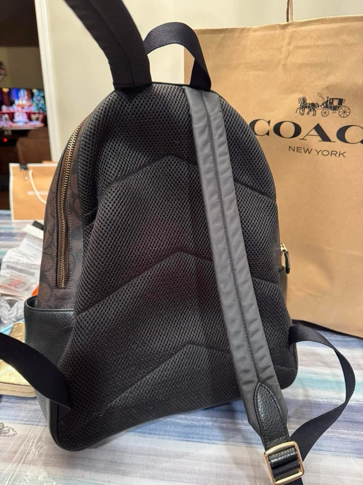 Exterior Color: Multicolor Country/Region of Manufacture: United States Lining Material: Fabric Pattern: Solid Department: Women Theme: Designer Exterior Material: Canvas, Leather Hardware Color: Silver Handmade: No Seller Notes: “Great” Accents: Zipper Personalize: No Accessories: Bag Charm Product Line: Coach Court Brand: Coach Handle/Strap Material: Leather Style: Backpack Closure: Zip Vintage: No