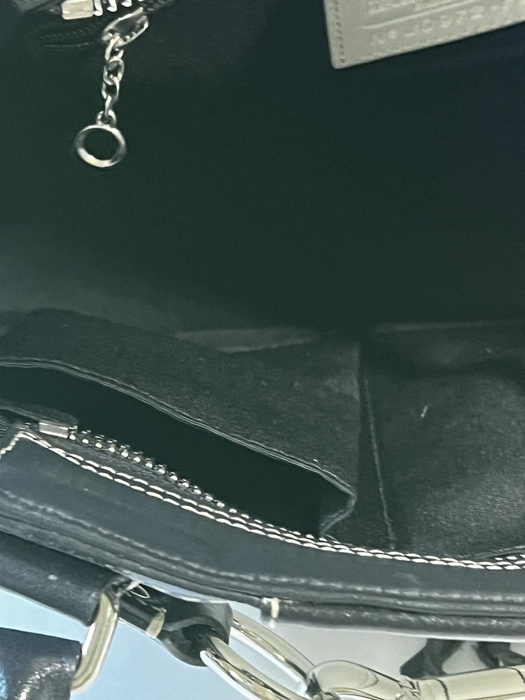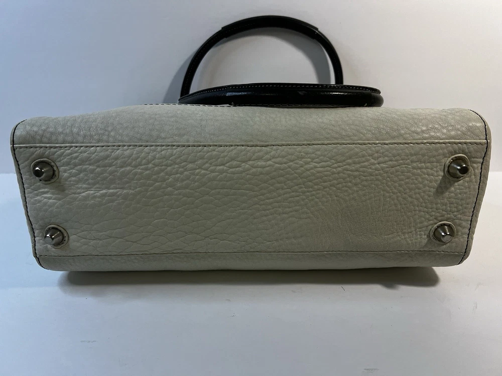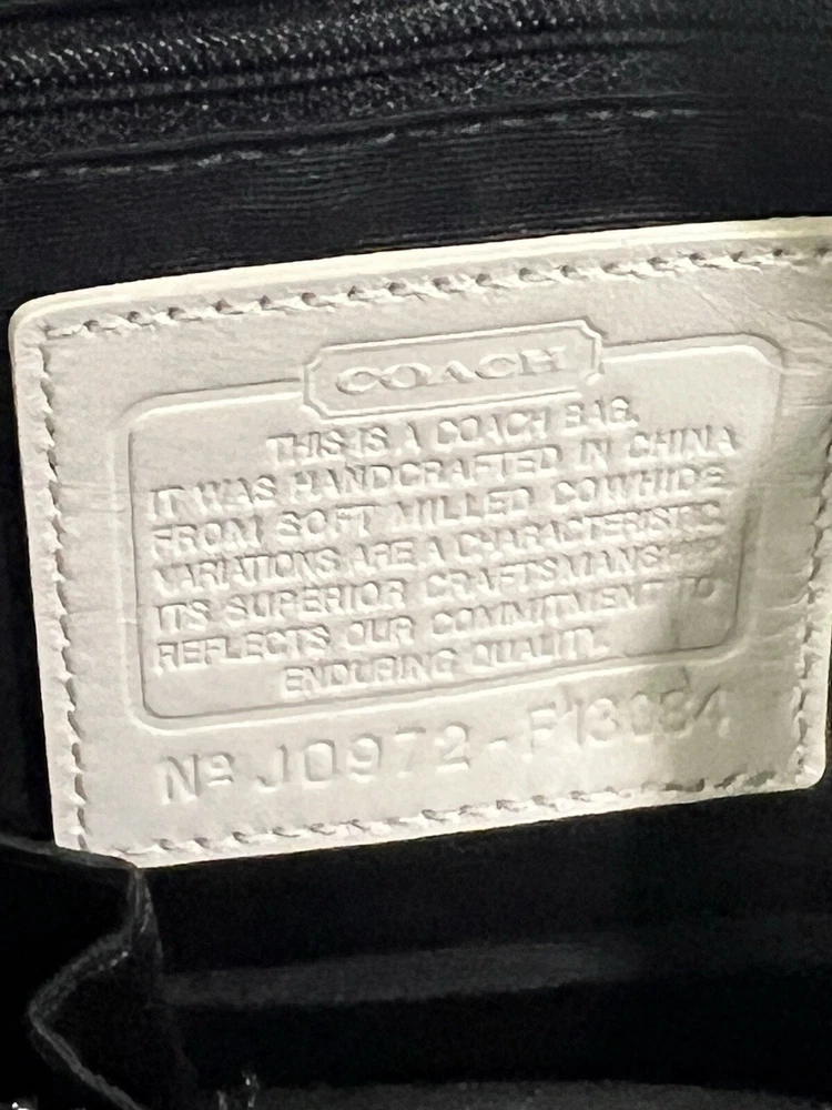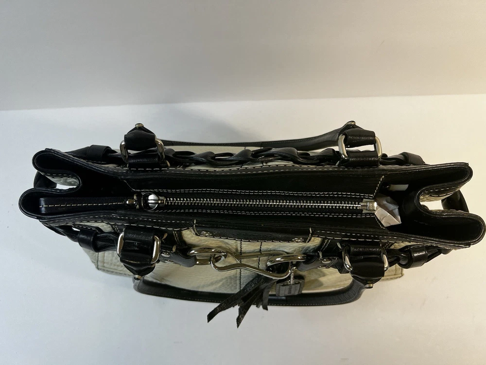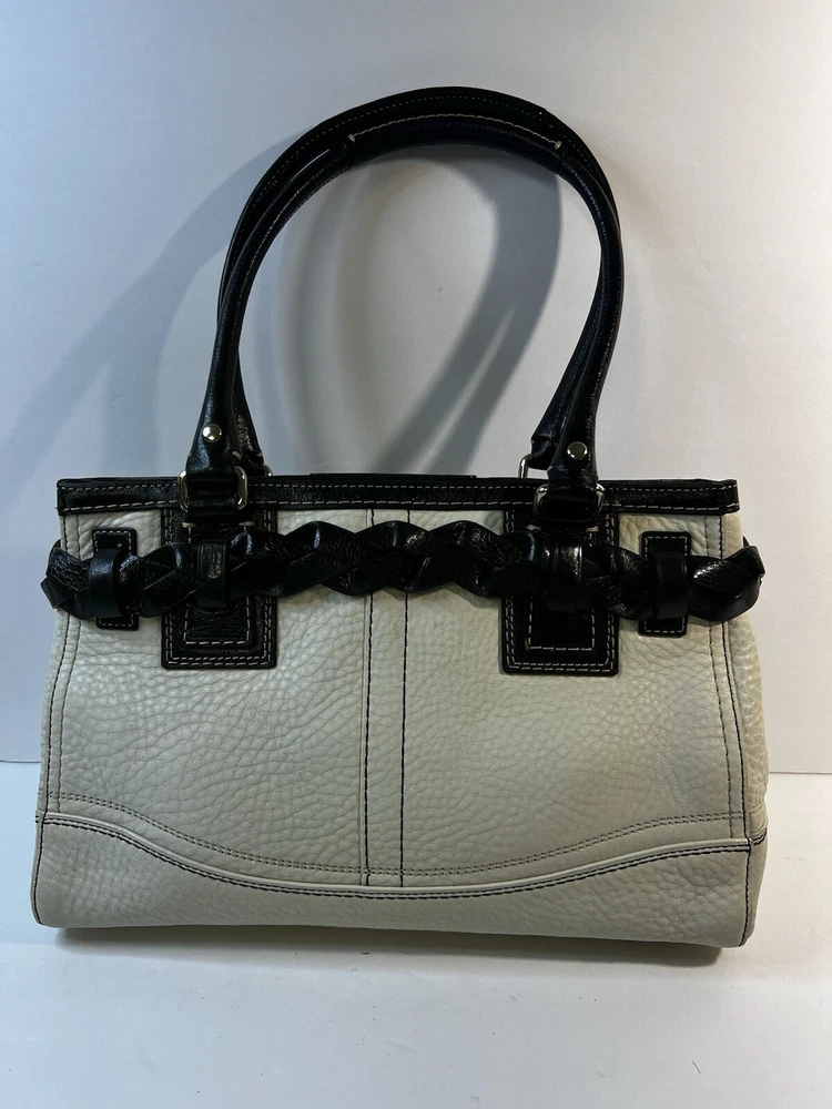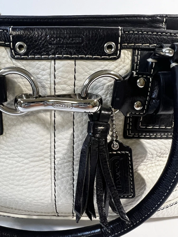 Coach F13084 Hampton White Black Pebble Leather Braid Accent Tassel Carryall Excellent condition.