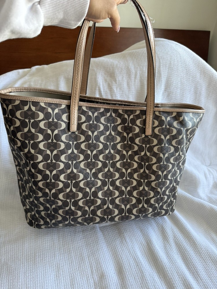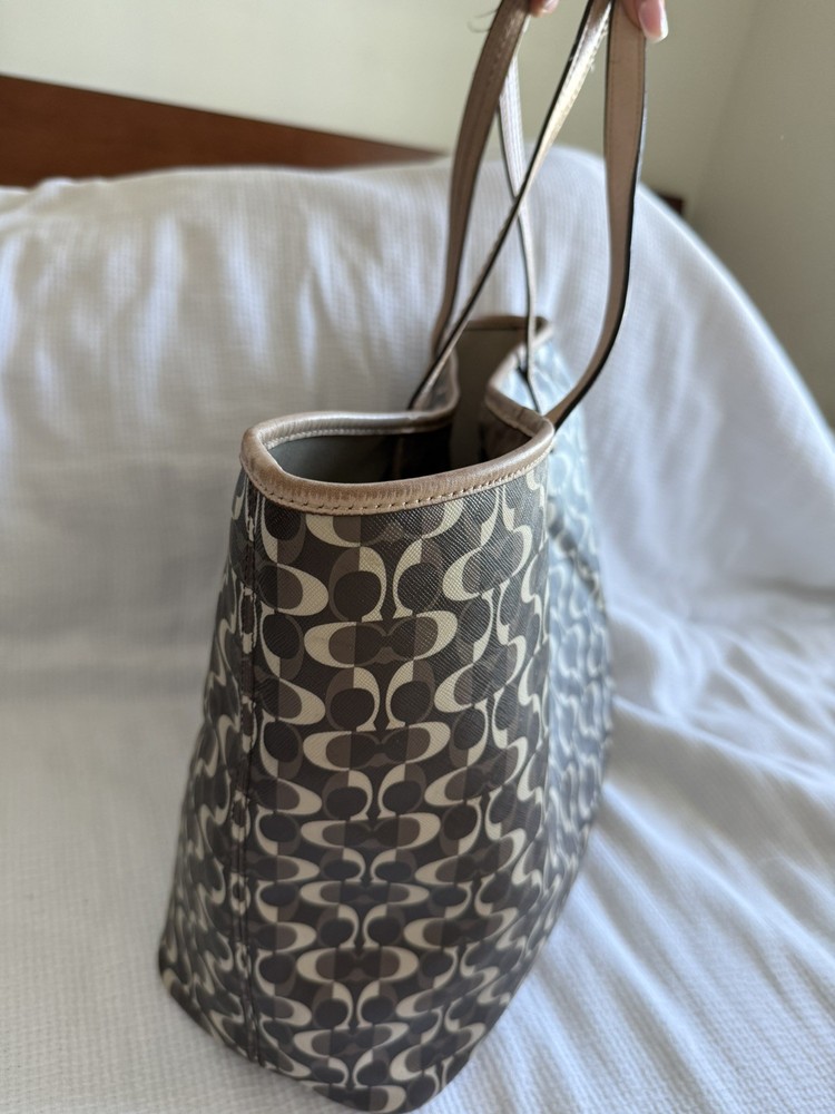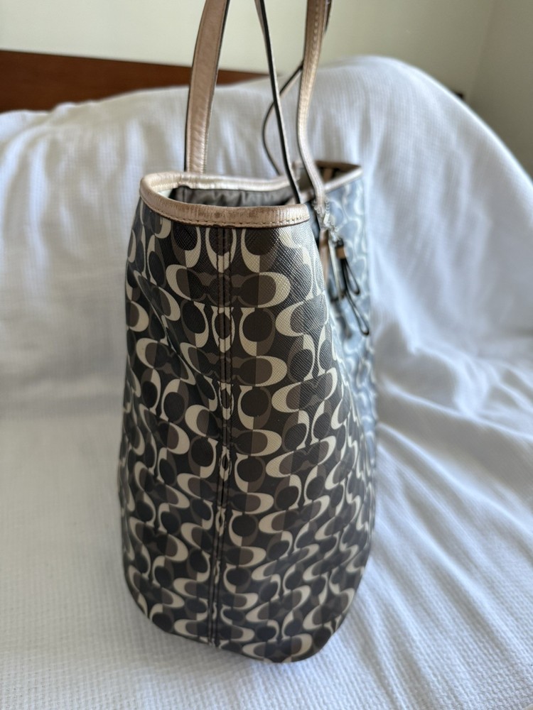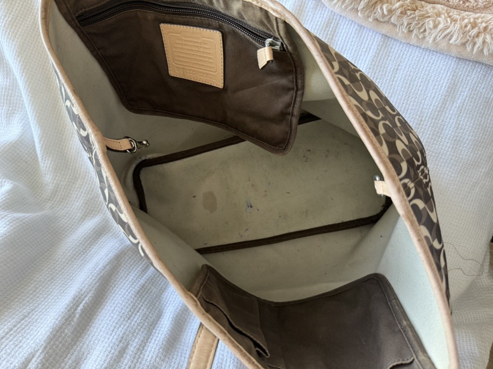 Coach F25673 Park Dream C Tote Shopper Bag Black/Tan with some stains inside