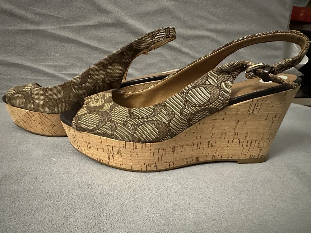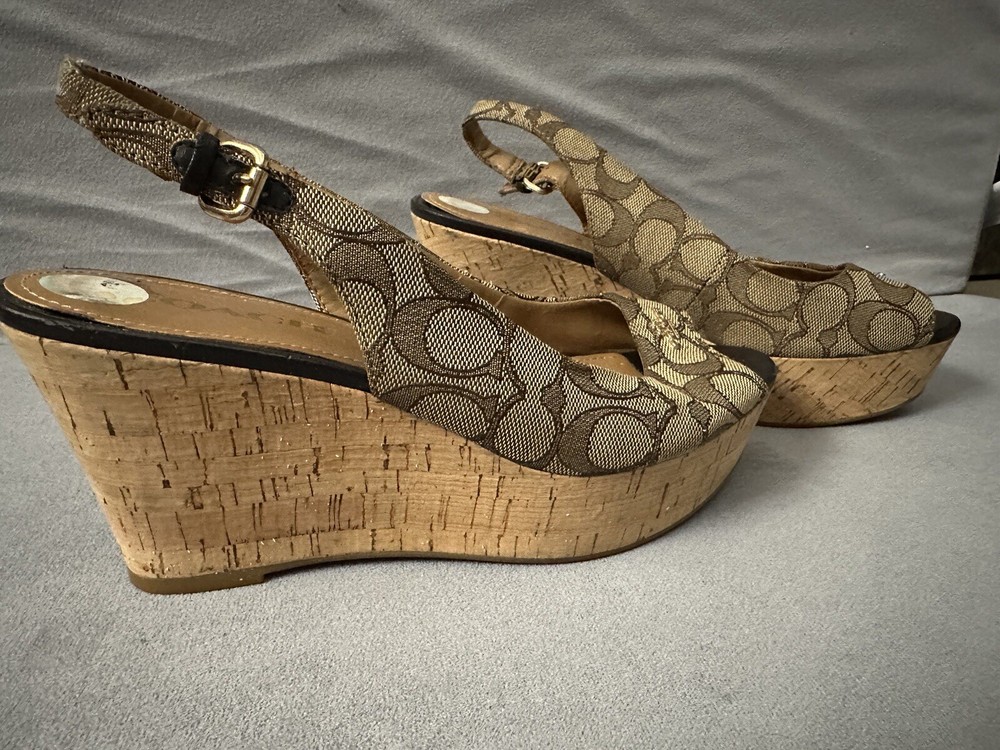 Coach Ferry Signature Wedges Open Toe Size 8 1/2