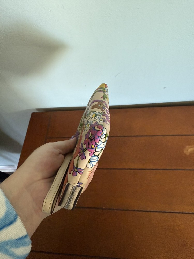 Coach Floral Embossed Leather Zip Wristlet with Corner Detail