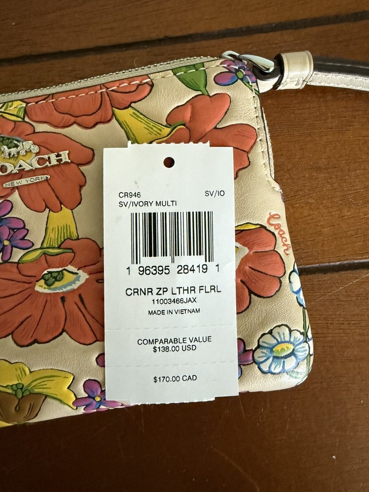 Type: Wallet Brand: Coach Material: Leather Department: Women Color: Ivory Style: Zip-Around Pattern: Floral