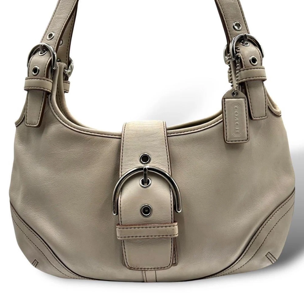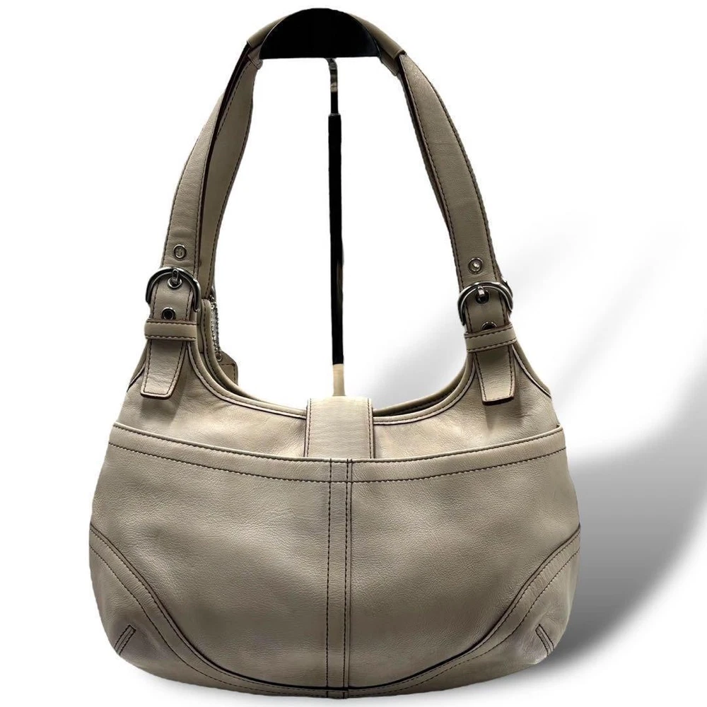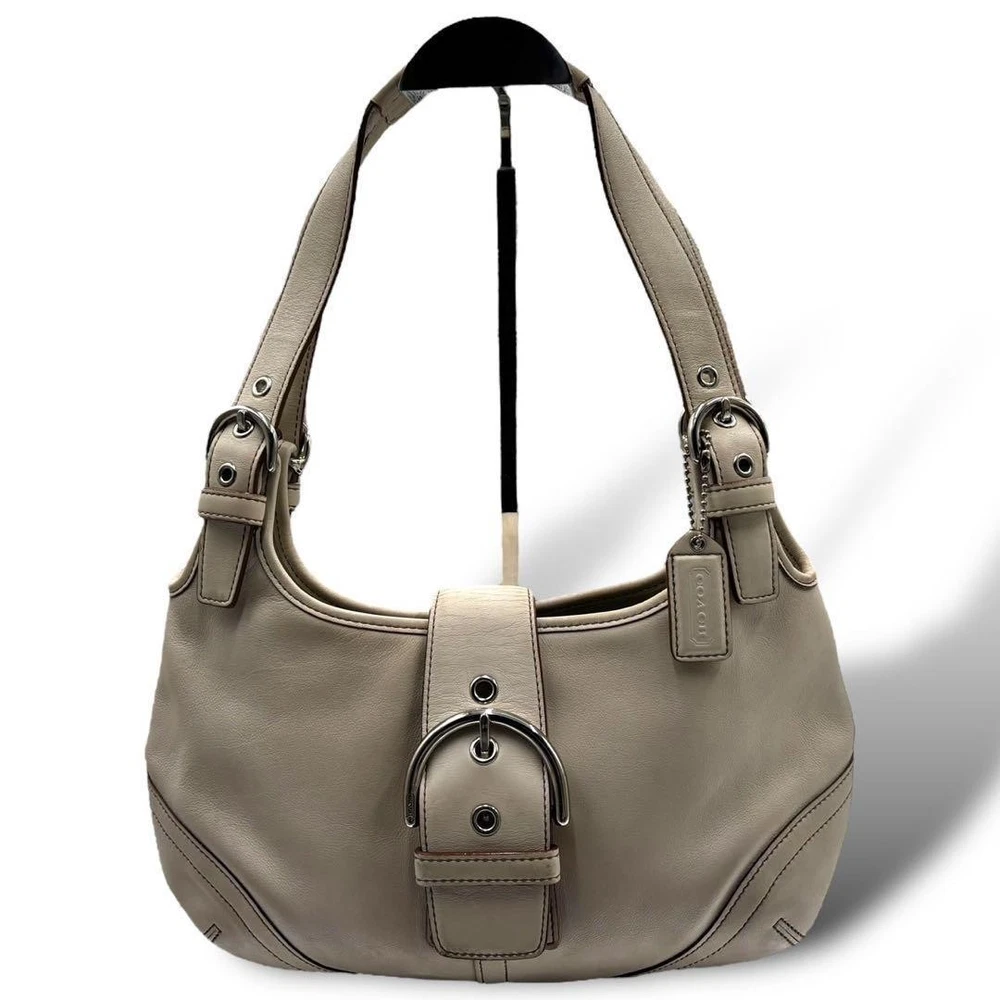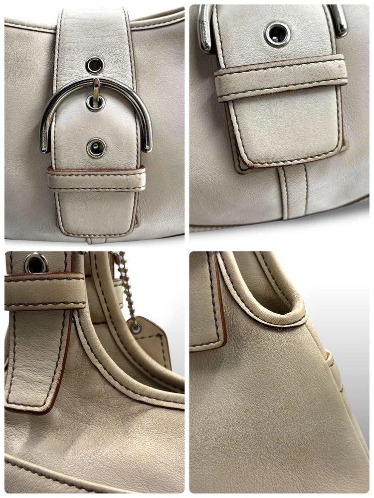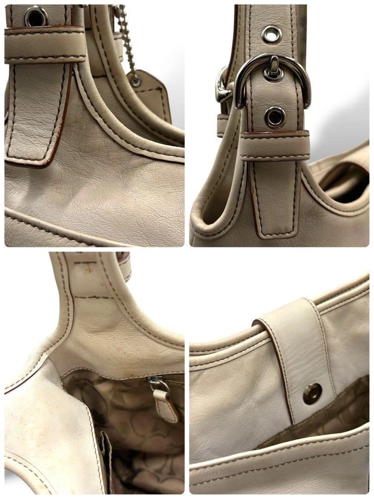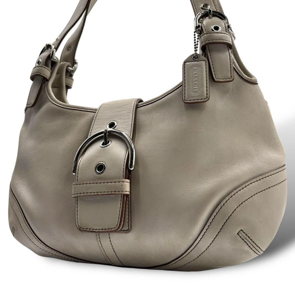 This Coach shoulder bag is a stylish and practical choice! The gray leather looks elegant, and the size is perfect for everyday use—fits all your essentials comfortably. Though it has light stains, they're barely noticeable. Shipping from Japan was fast, and the seller was super responsive. Great value for an authentic Coach piece!