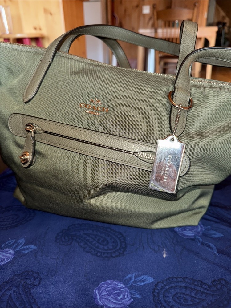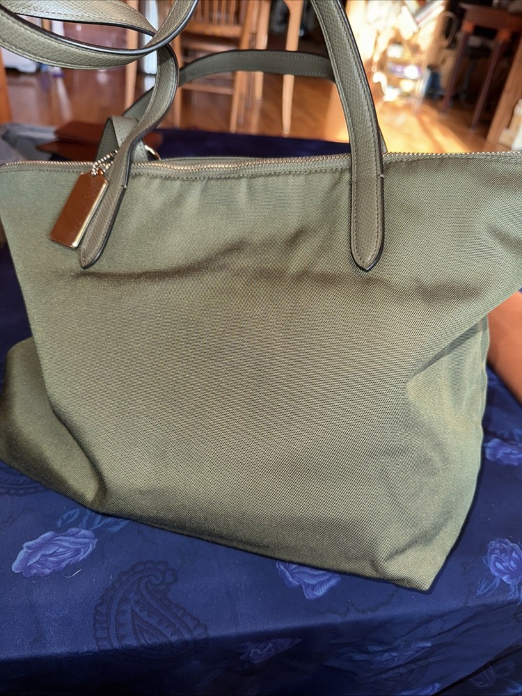 Size:MediumCountry of Origin:JapanShape:RectangleHandle/Strap Color:GreenExterior Color:GreenClosure:ZipHandmade:NoBrand:CoachHandle Style:Shoulder StrapPattern:SolidDepartment:WomenAccents:ZipperSeller Notes:“Brand new no tags. Plastic still on metal tag”Style:Shoulder BagLining Color:GreenFeatures:Inner PocketsMPN:35500SVB75Handle/Strap Material:LeatherPersonalize:NoStrap Drop:8Occasion:Shoulder BagExterior Material:Nylon