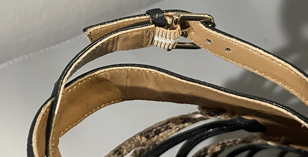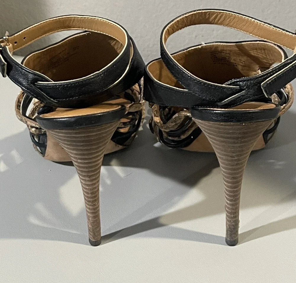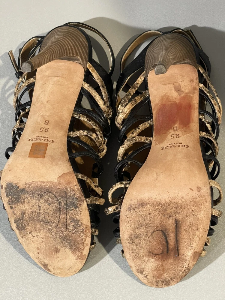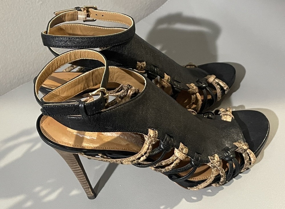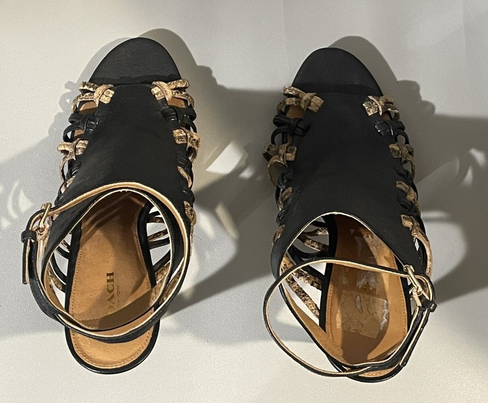Coach Jody Python Print Strappy Stiletto Heels in Black/Sand - Size US 9.5