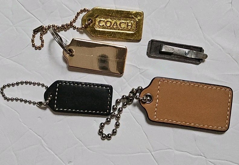 Coach KeyChain | Hang tag | Bag Charm Bundle 1 Clip 1 Vintage Chain gold metal 2-leather chain Used-Good see picture