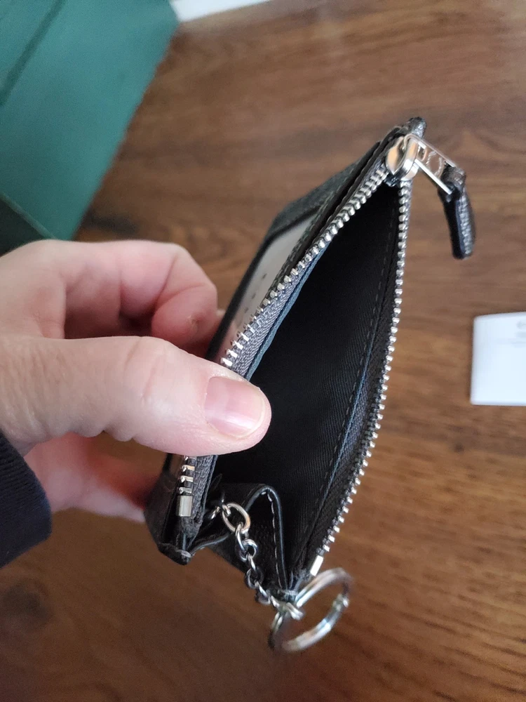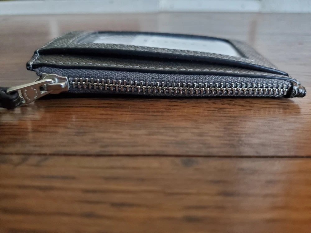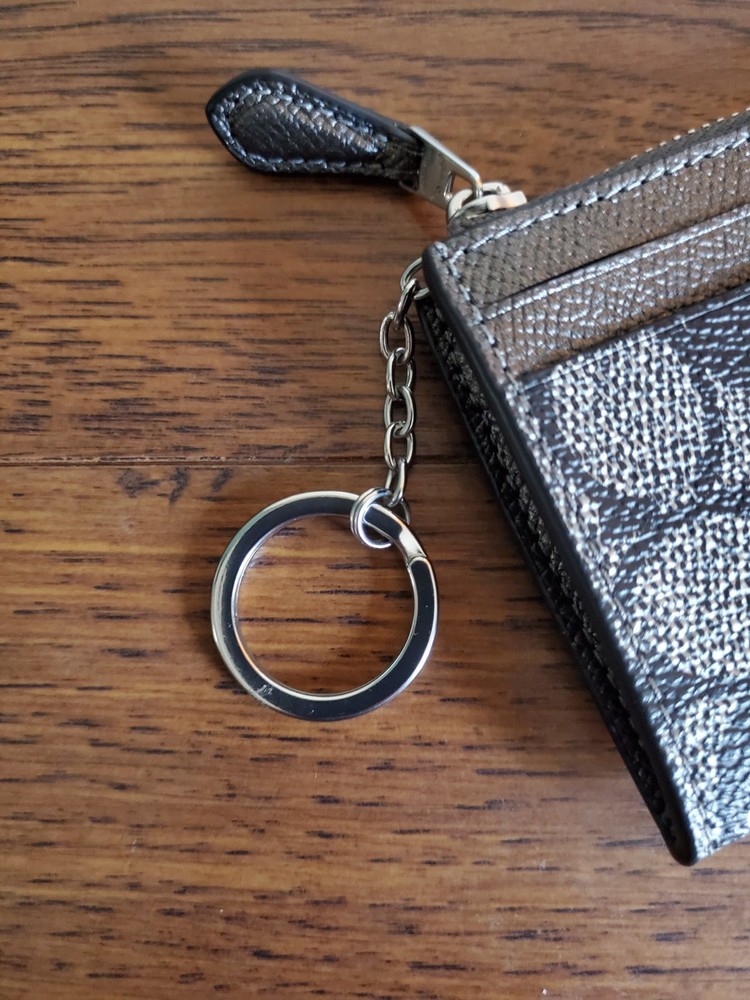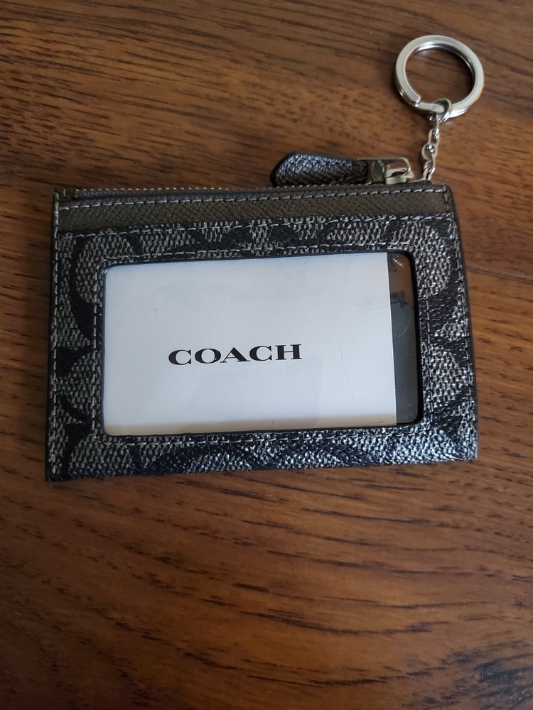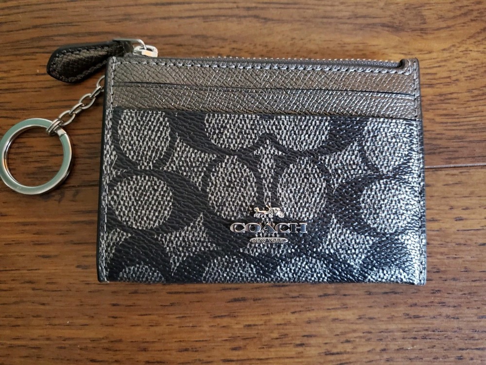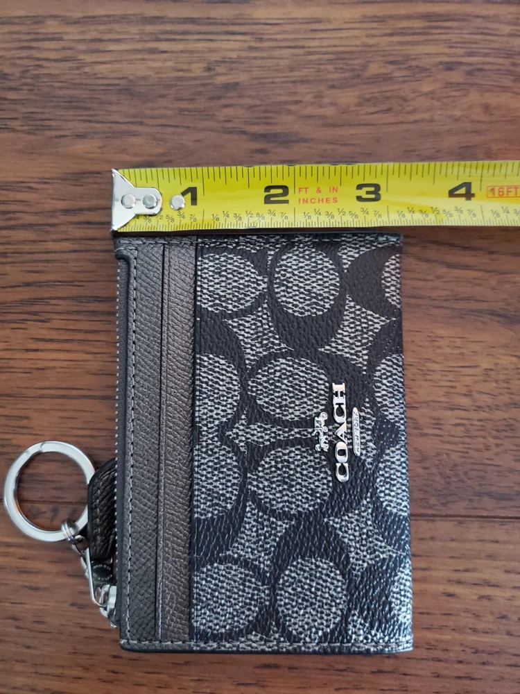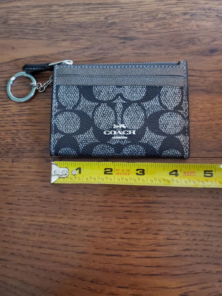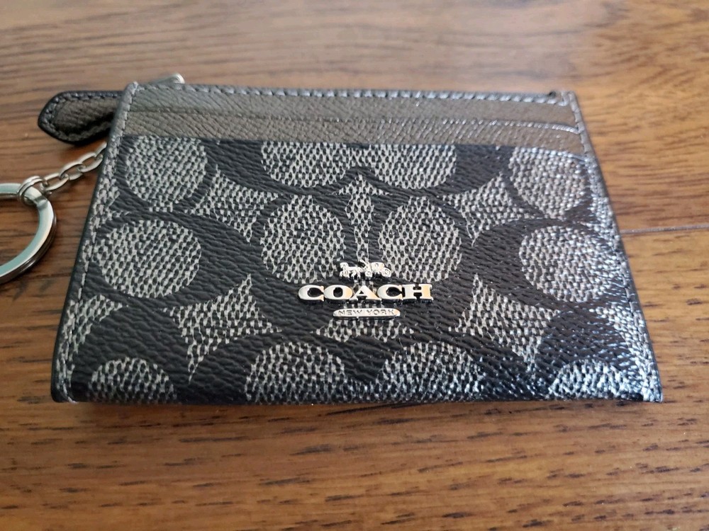 Coach Leather Card Holder black & silver key ring coin purse, see pics for approximate measurements, as pictured, no returns. Shipped USPS
