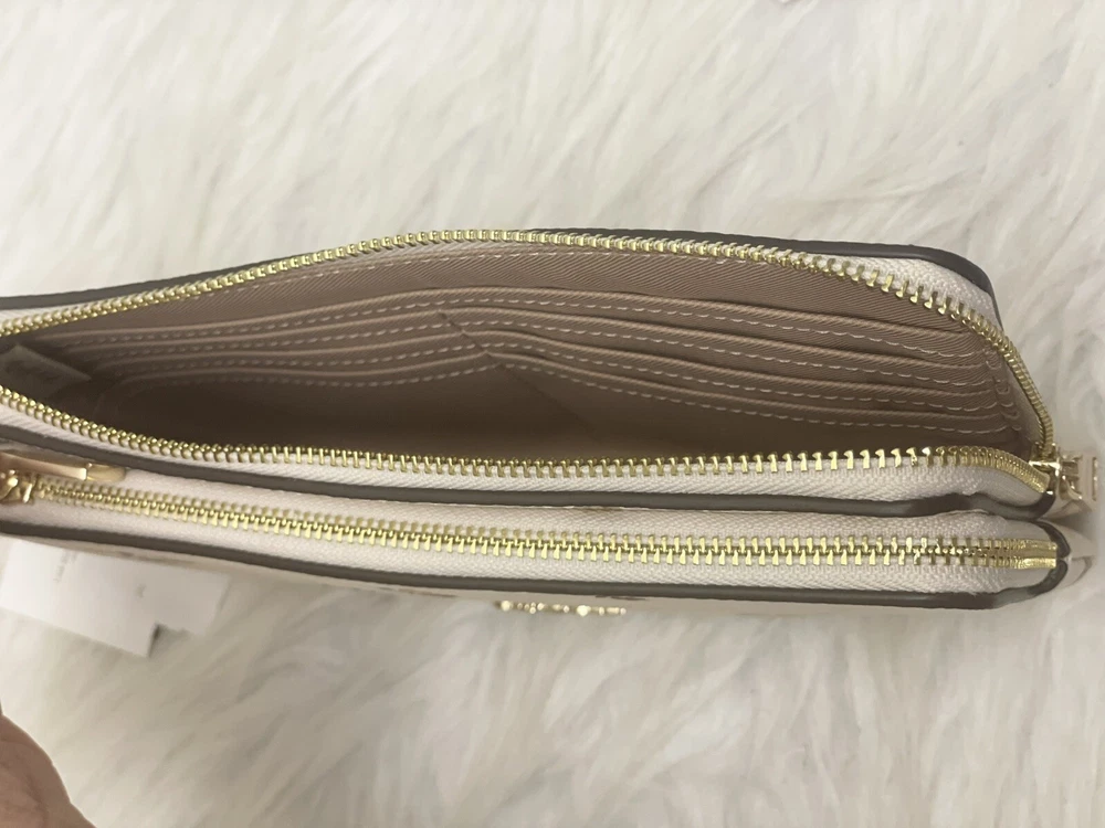 Style Number CW969 Measurements Length: 8.0" Height: 4.75" Width: 1.0" Materials Printed coated canvas and smooth leather Fabric lining Strap Wrist strap attached Features Eight credit card slots Double zip closure Fits all phone sizes up to an iPhone X and Samsung S7 Edge 100% Authentic Come with original packaging