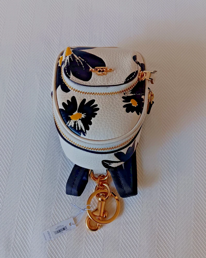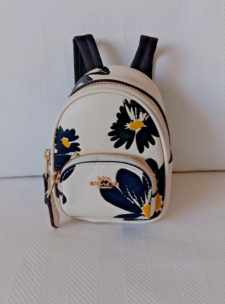 Coach Mini Court Backpack Bag Charm With Floral Print In leather CZ605 NWT
