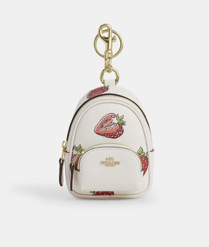 Coach Mini Court Backpack Charm Strawberry Print CAO93
