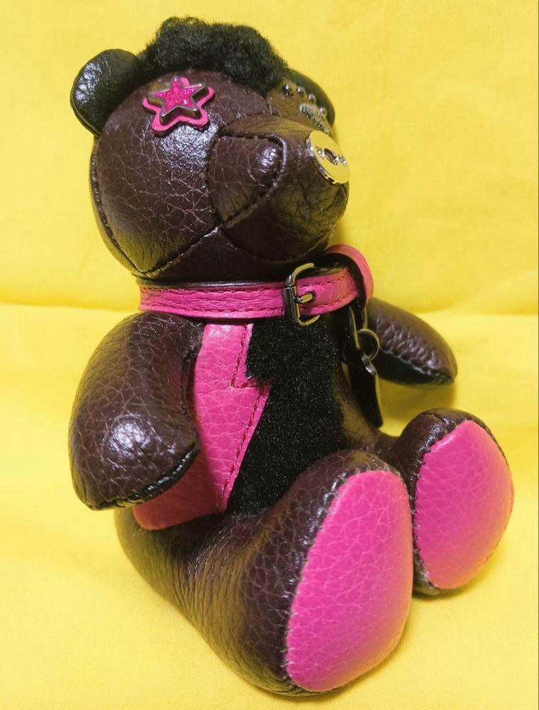 Coach Outlaw Teddy Bear Charm Keychain in Brown Pink with Glitter Studs