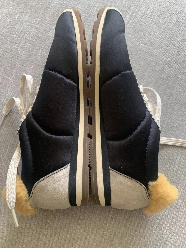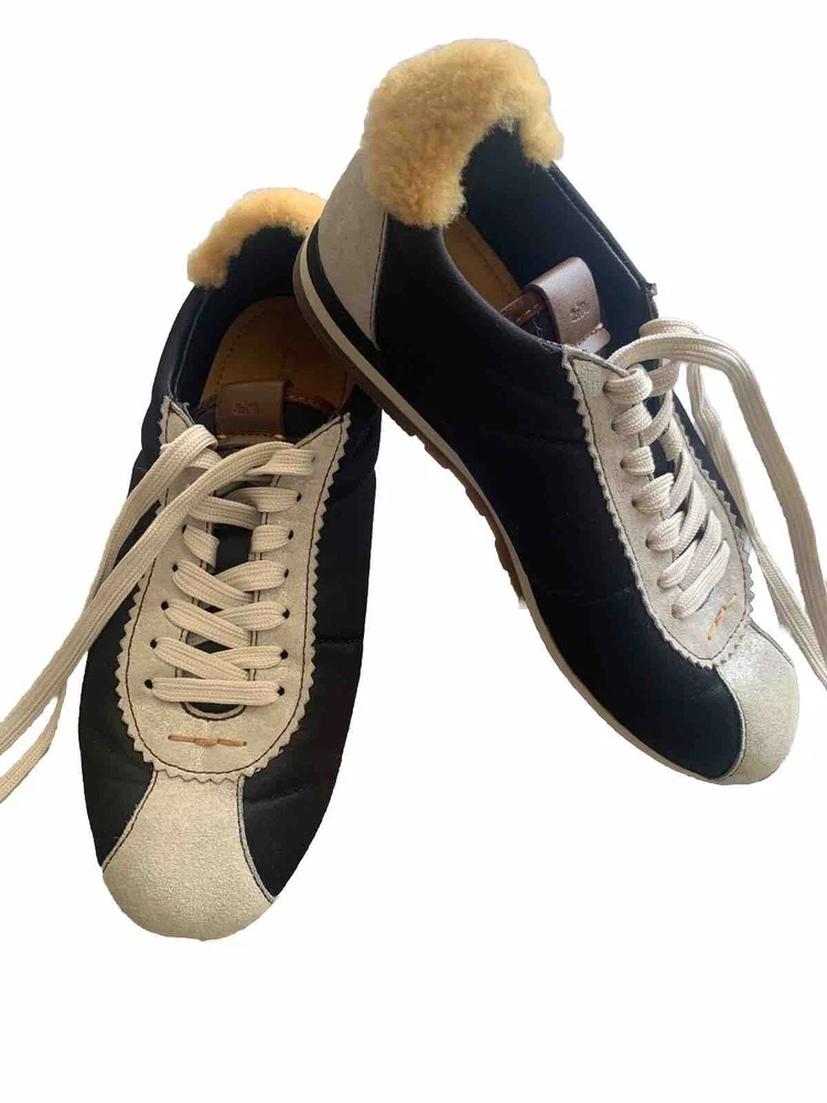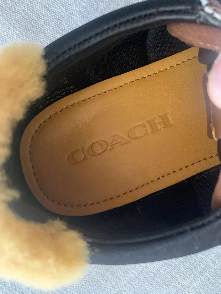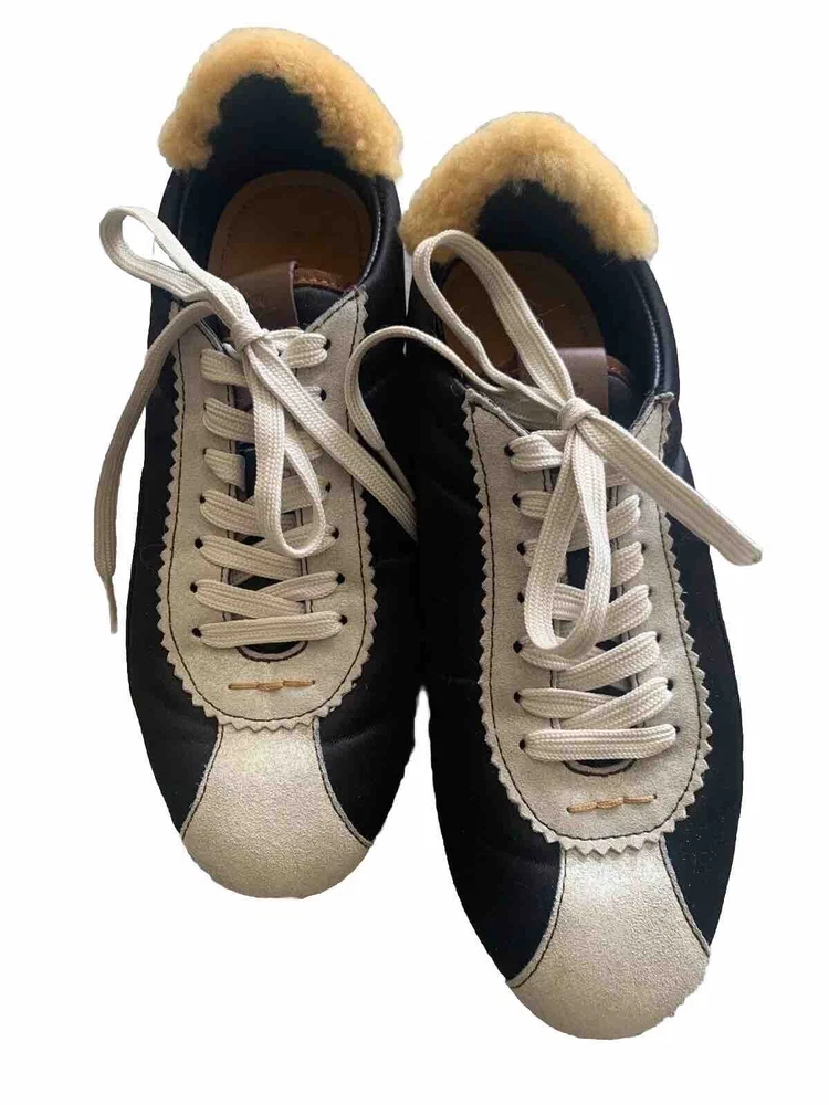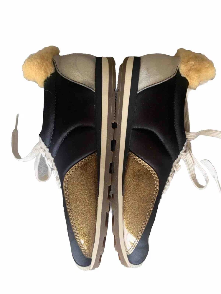 Coach Shoes Womens Size 6.5B Black Gold Sheep Fur Tennis Sneakers Low Lace G1313