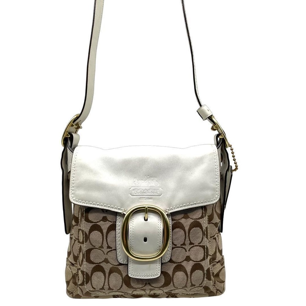 Coach Signature Beige & White One Shoulder Bag