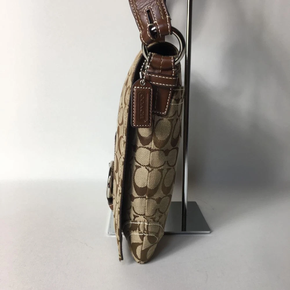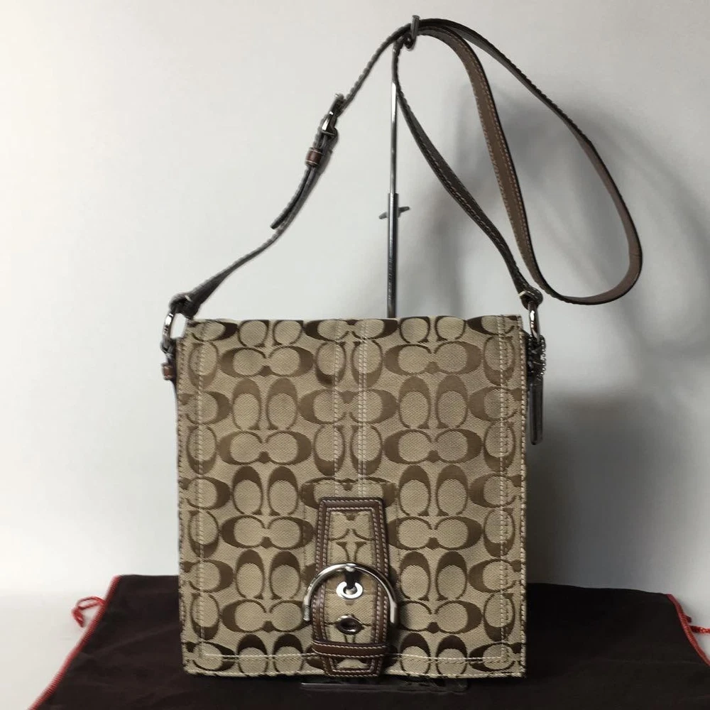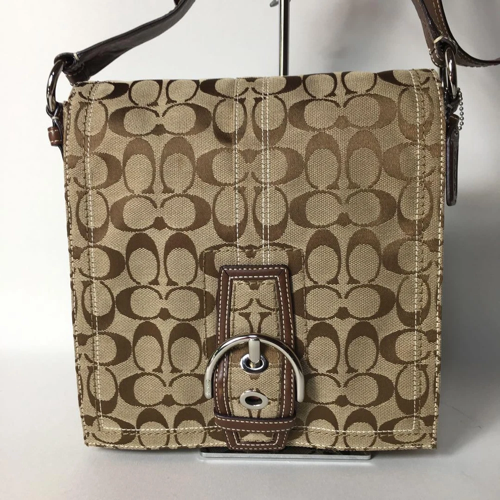 1. This Coach Signature Shoulder Bag is a stylish and practical choice! The beige canvas with brown leather accents looks chic and timeless. It's spacious enough for daily essentials, and the adjustable strap makes it comfortable to wear. The included dust bag and logo charm are nice extras. Despite being pre-owned, it's in great condition with minimal wear. Shipping from Japan was smooth, and the seller was responsive. A fantastic deal for a high-quality Coach bag!