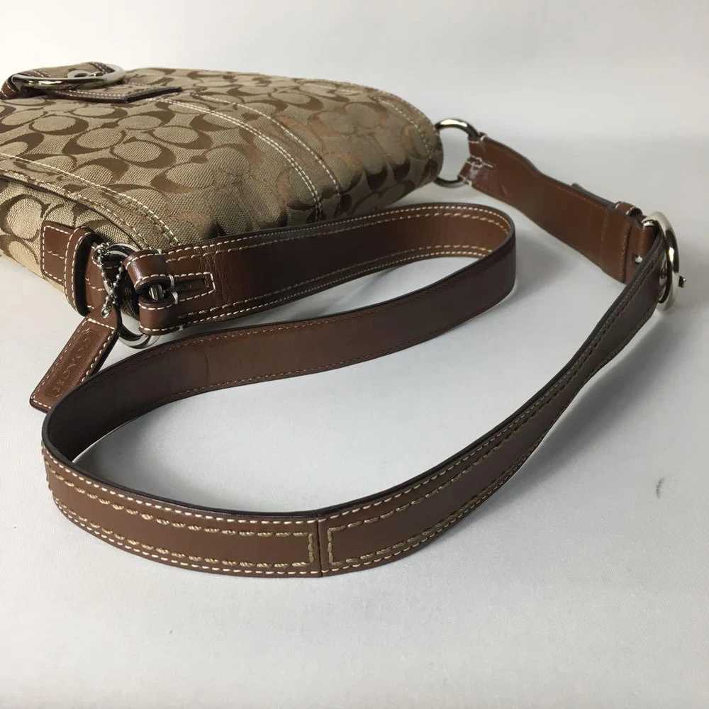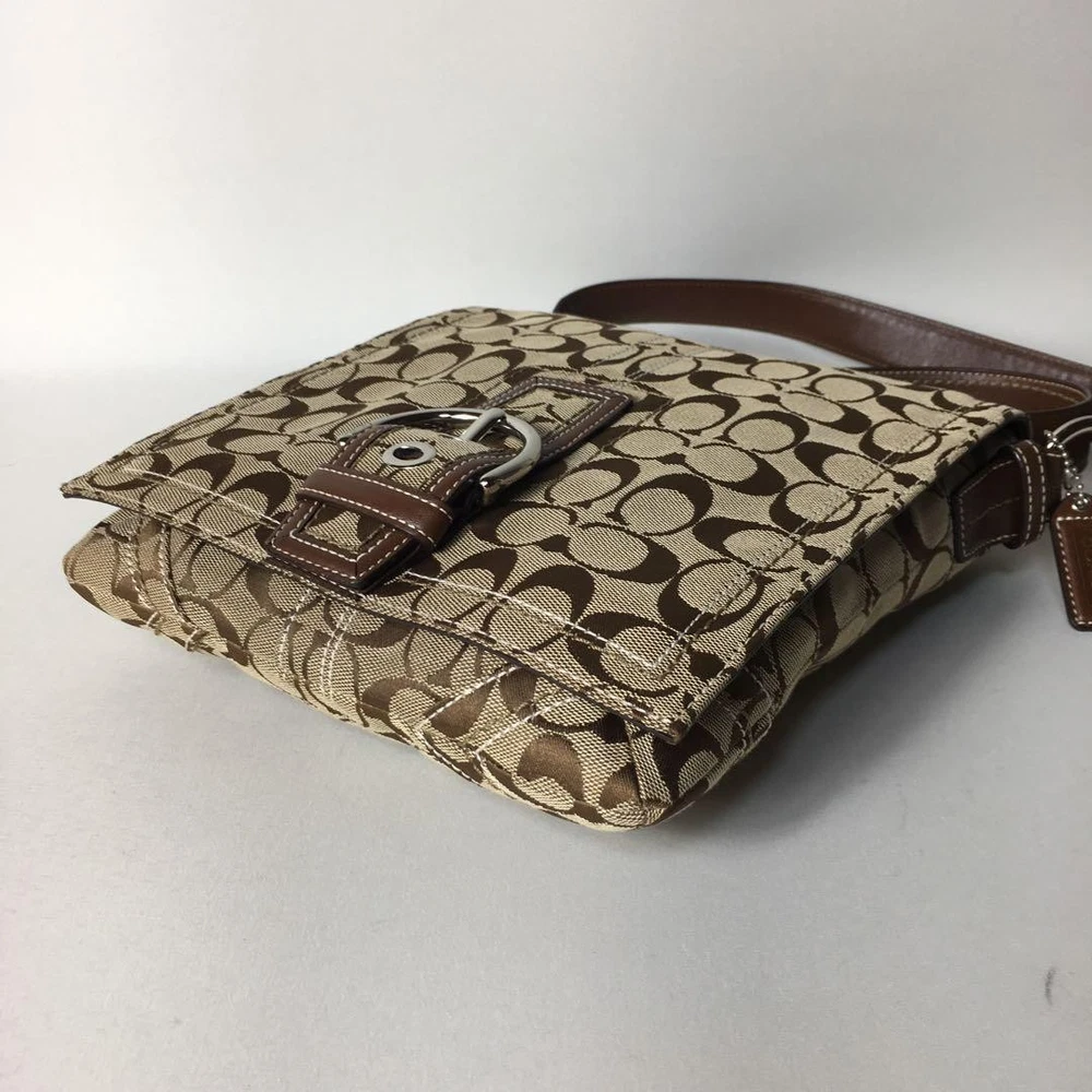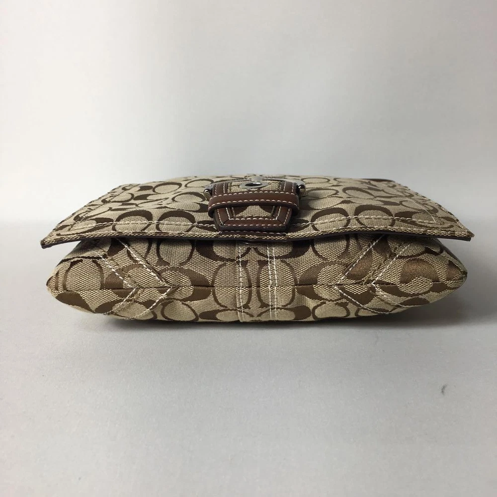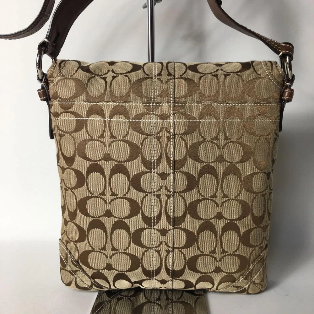 1. This Coach Signature Shoulder Bag is a stylish and practical choice! The beige canvas with brown leather accents looks chic and timeless. It's spacious enough for daily essentials, and the adjustable strap makes it comfortable to wear. The included dust bag and logo charm are nice extras. Despite being pre-owned, it's in great condition with minimal wear. Shipping from Japan was smooth, and the seller was responsive. A fantastic deal for a high-quality Coach bag!