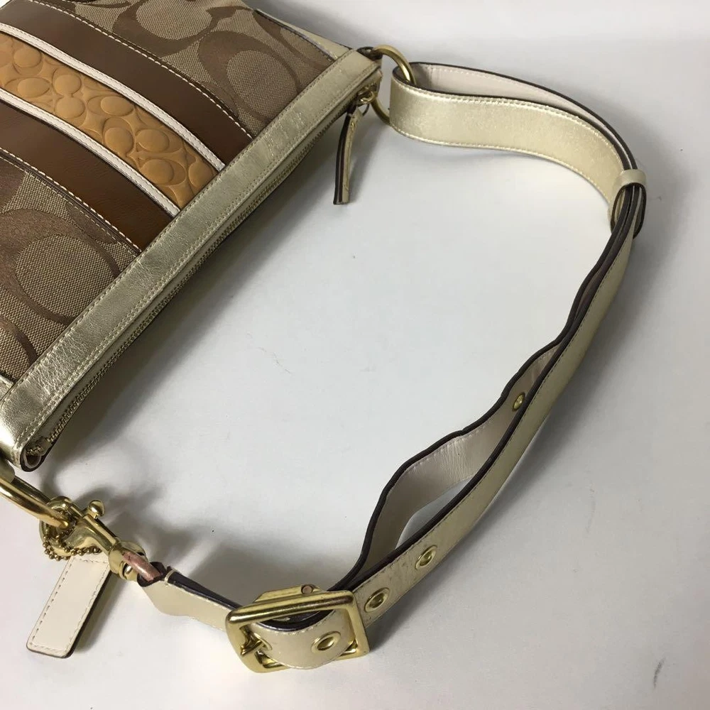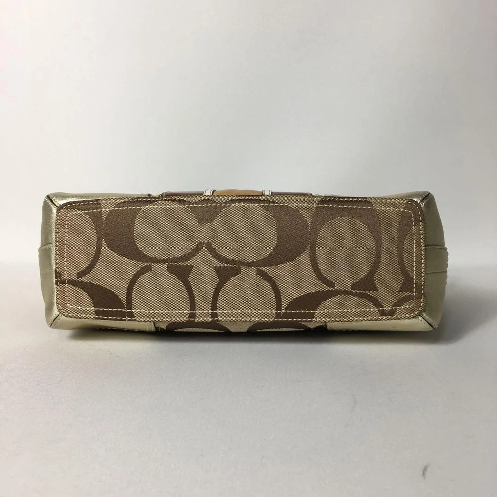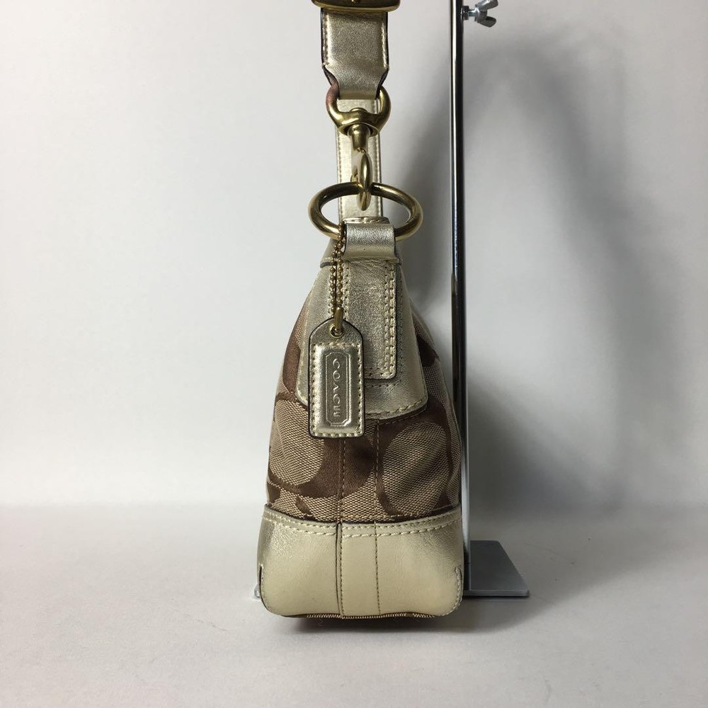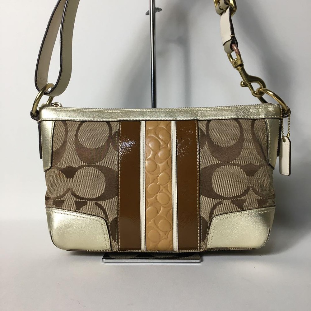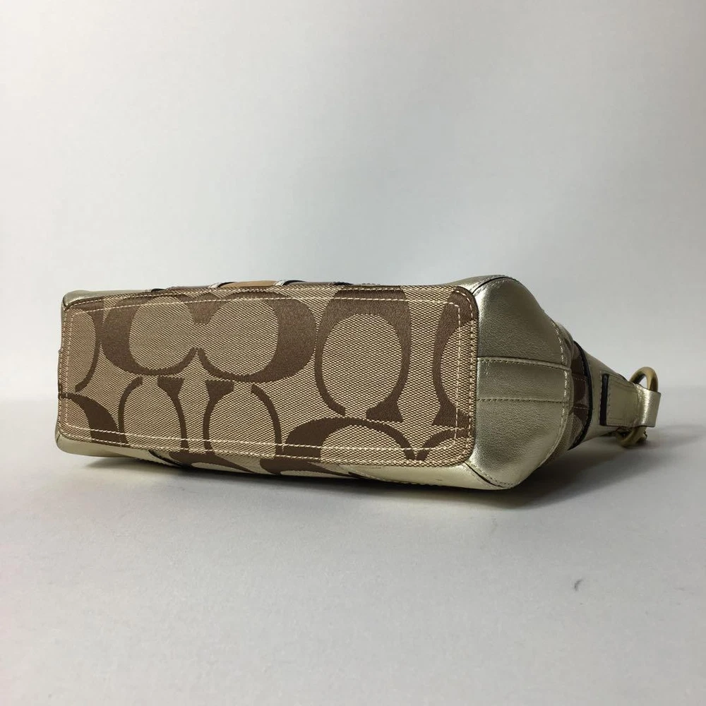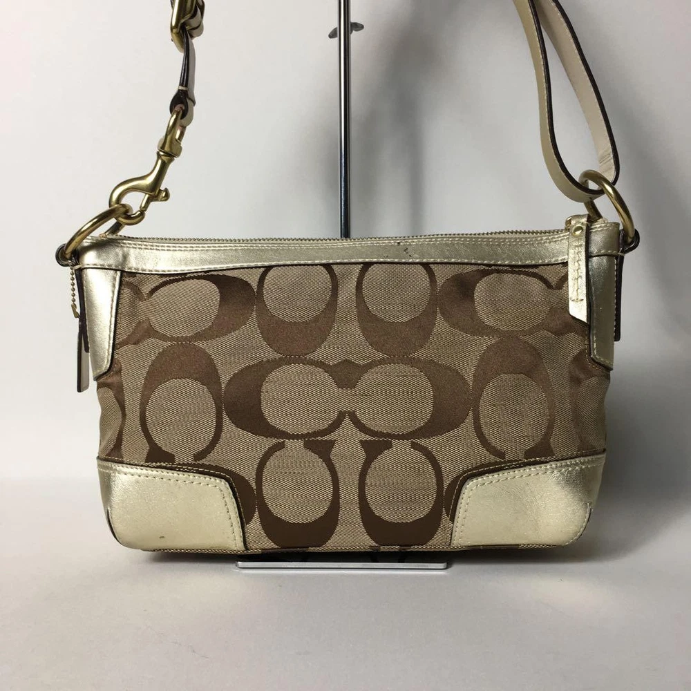 Love this Coach shoulder bag! The beige canvas and gold leather combo is classic and stylish. The size is perfect for daily essentials, and the adjustable strap makes it super versatile. The slight wear adds character—still looks amazing. Fast shipping from Japan was a nice surprise. Highly recommend for a chic, functional accessory!