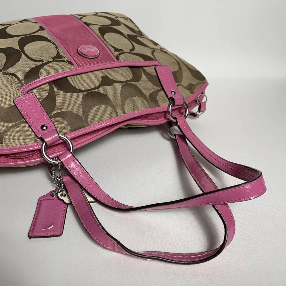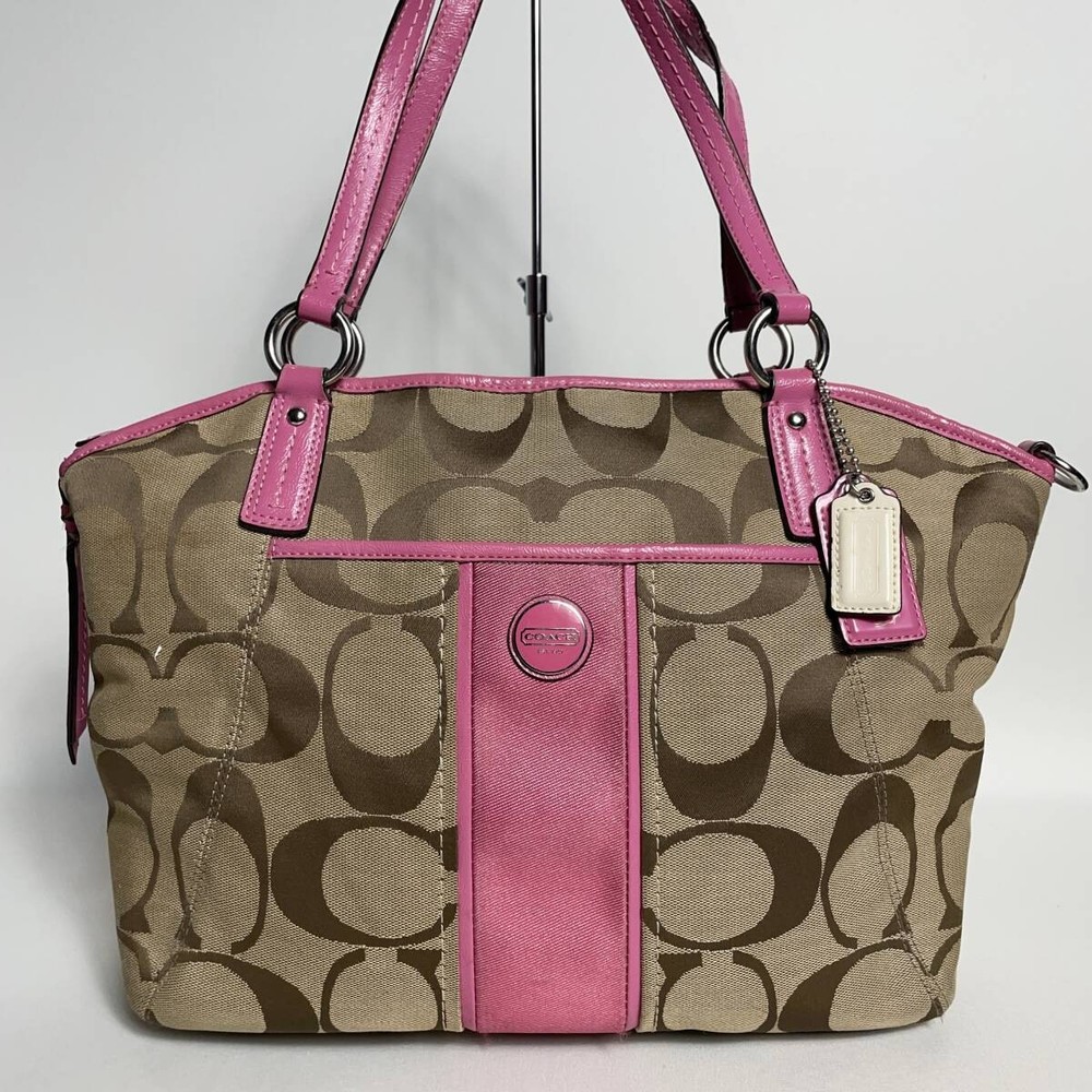 This Coach Signature Tote in pink is absolutely stunning! The quality is top-notch, with durable stitching and a spacious interior perfect for daily use. The seller ships quickly from Japan and packages everything securely. The color is vibrant and the design is timeless—definitely worth every penny! Highly recommend for anyone looking for a stylish, functional bag.