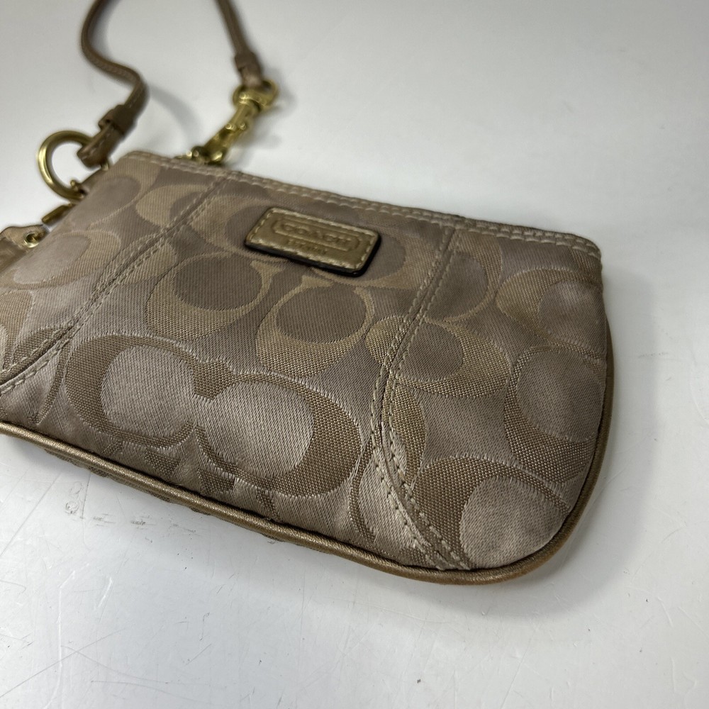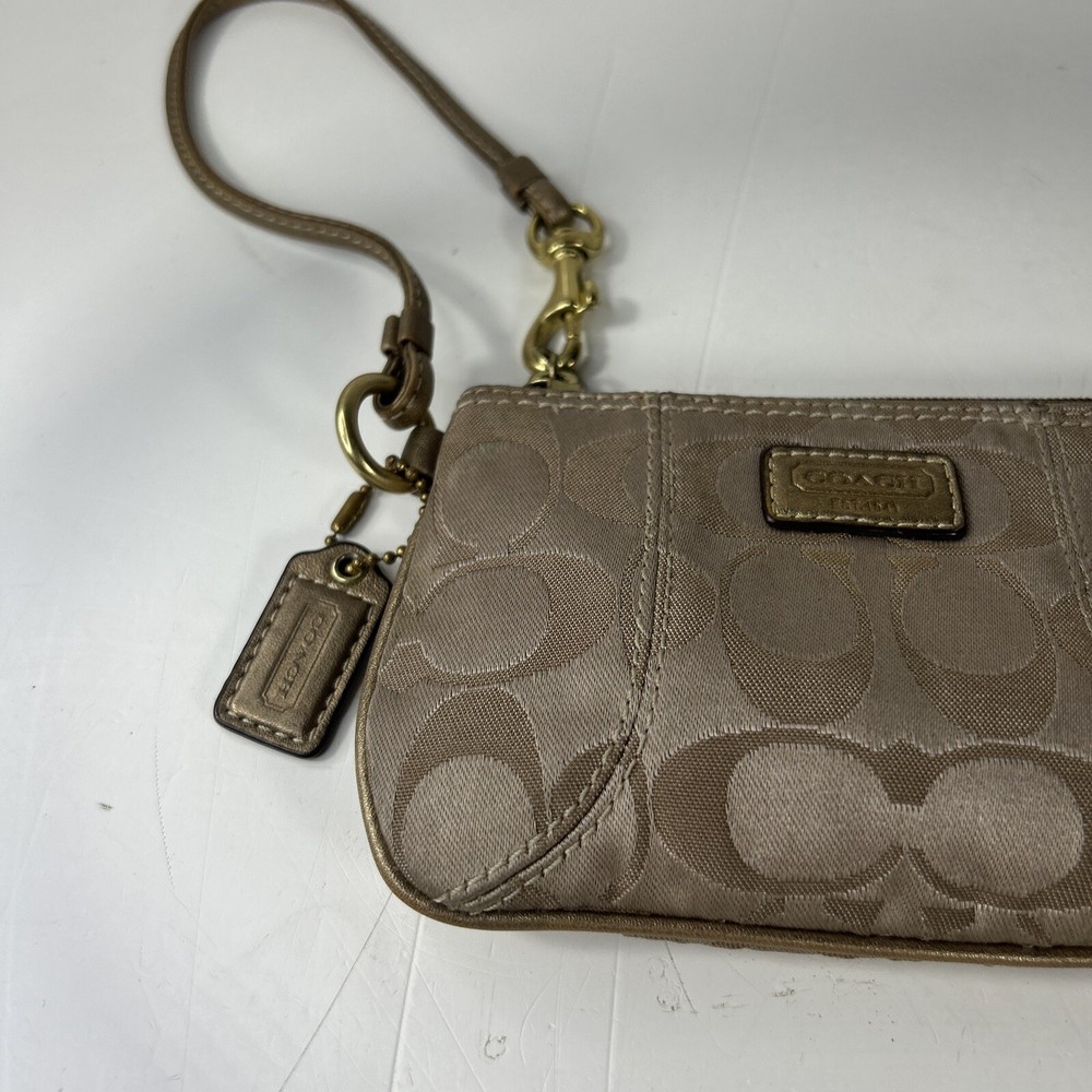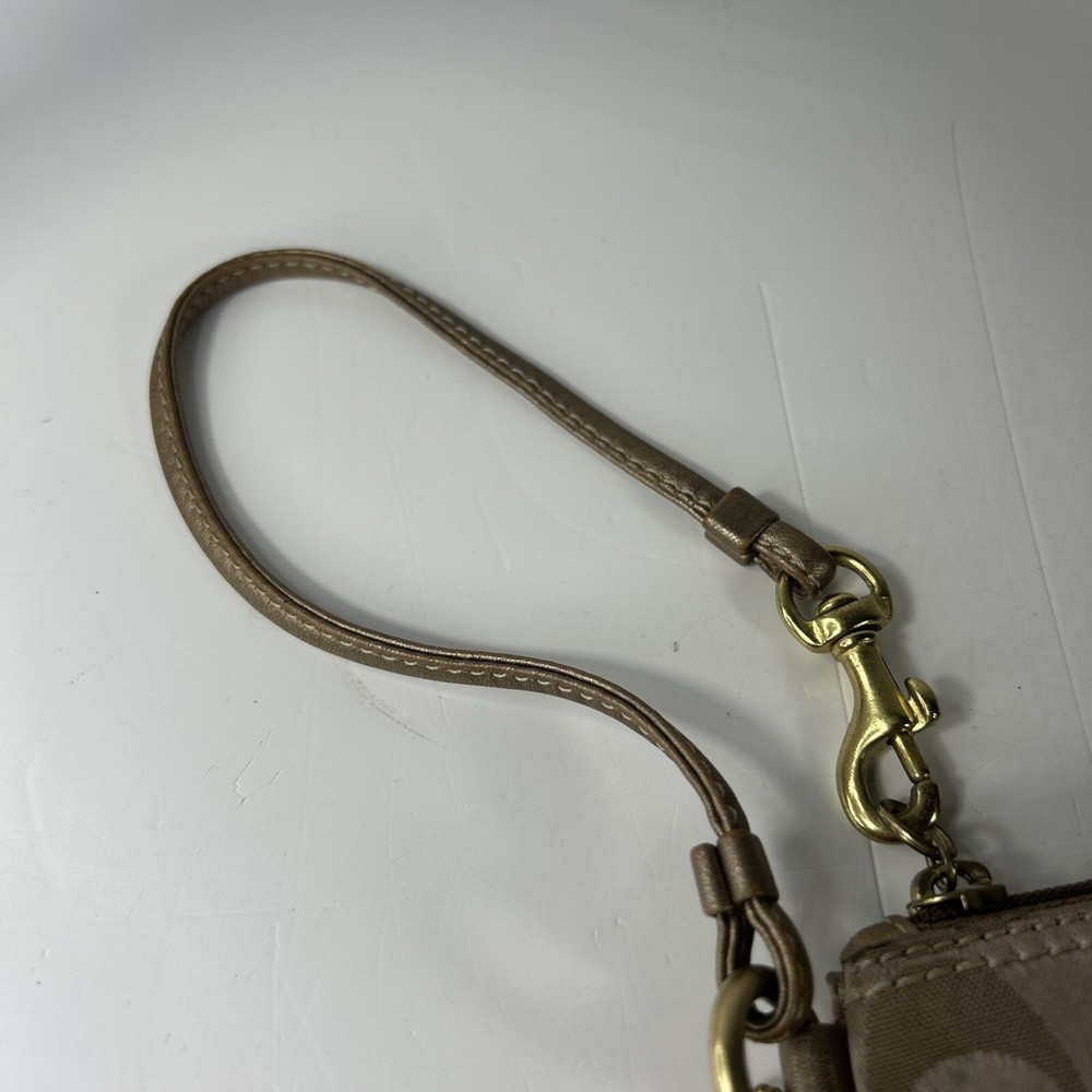 Coach Small Jacquard & Leather Wristlet with Gold Hang Tag in Khaki