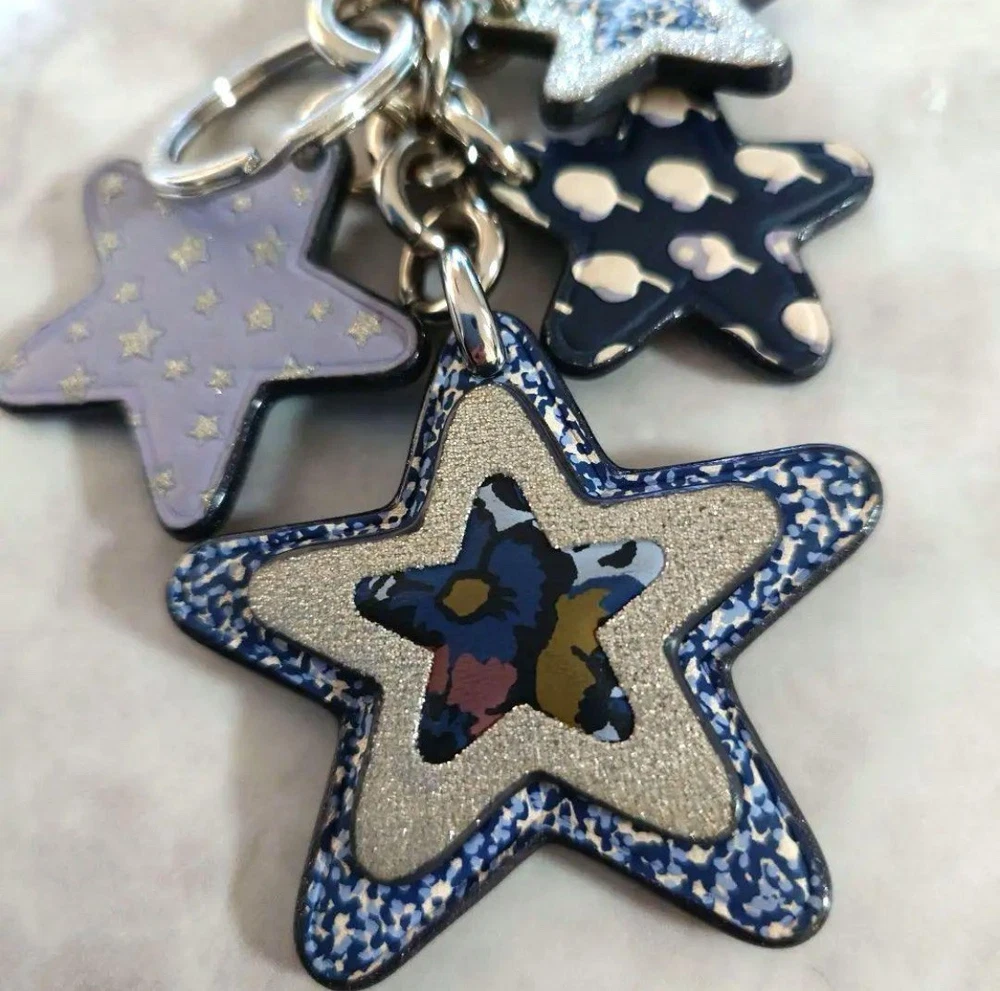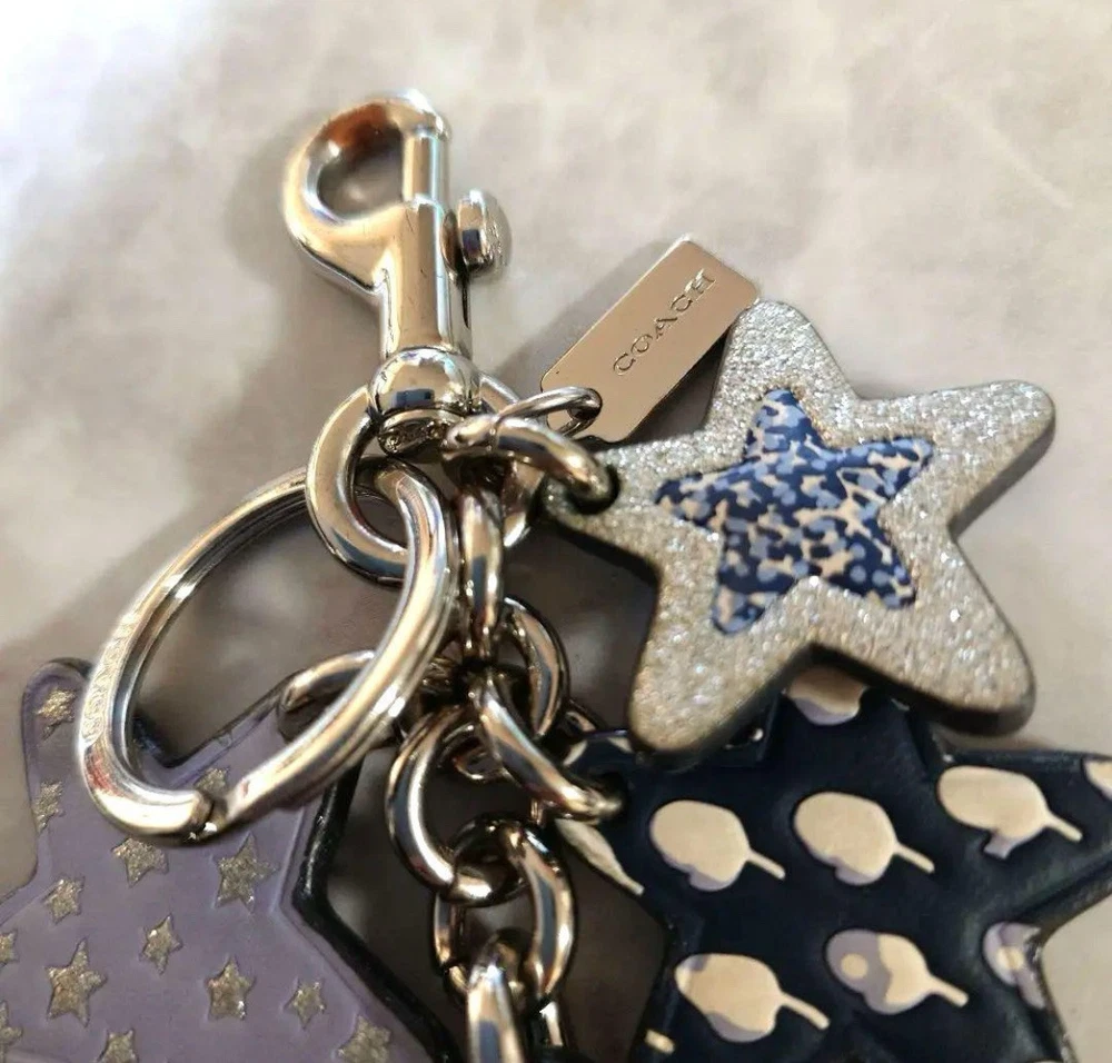Coach Star Cluster Charm Keychain Blue Silver Glitter Multi - Great Condition
