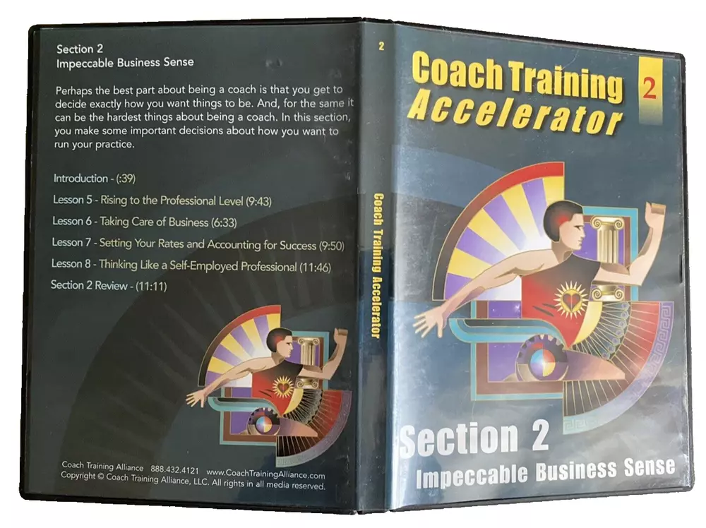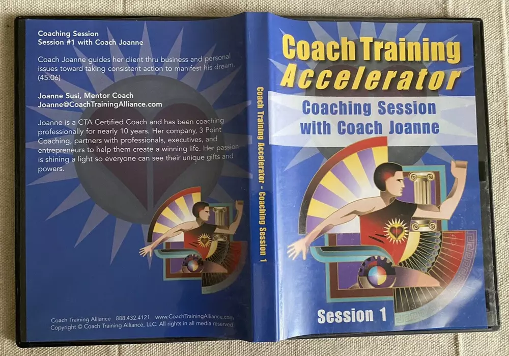 Complete Life Coach Training! Coach Training Accelerator -11 Training DVDs +Training Course & Resource Library by Coach Training Alliance Excellent pre-owned condition. Complete 11 CD-Rom/DVD Set includes the following: -Coach Training Accelerator Quick Start -Coach Training Accelerator -Section 1 Coaching from Center -Coach Training Accelerator -Section 2 Impeccable Business Sense -Coach Training Accelerator -Section 3 Effective Coaching Tools -Coach Training Accelerator -Section 4 Becoming A Client Magnet -Coach Training Accelerator -Section 5 Masterful Coaching Skills -Session 1 Coaching Session with Coach Joanne -Session 2 Coaching Session with Coach Dave -Session 3 Coaching Session with Coach Rhonda -Session 4 Coaching Session with Coach Laurie -Session 5 Coaching Session with Coach Drayton Questions? Please ask. Ships next business day.