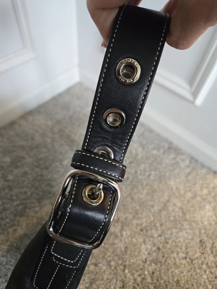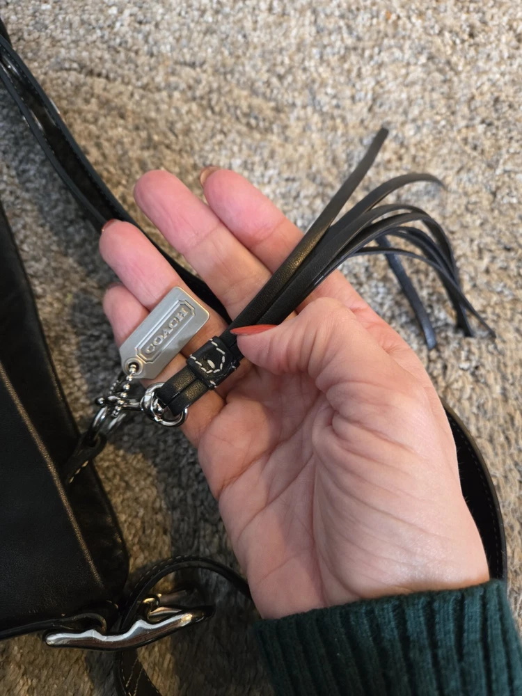 Gorgeous buttery soft Vintage Black Leather Coach Legacy 1415 Bag - silver hardware and detachable tassel keychain. Interior aligned with classic Coach C design, internal zipper pocket and two additional side compartments. Measurements: Depth – 2.5” Height –10” Width – 10” Condition: - Excellent interior exterior, no rips or stains or pen. Faint signs of wear such as faint scratches to exterior leather. All corners and edges are in excellent condition. - Clean Interior, no pen, odor or gunk. Smoke free and pet free home.