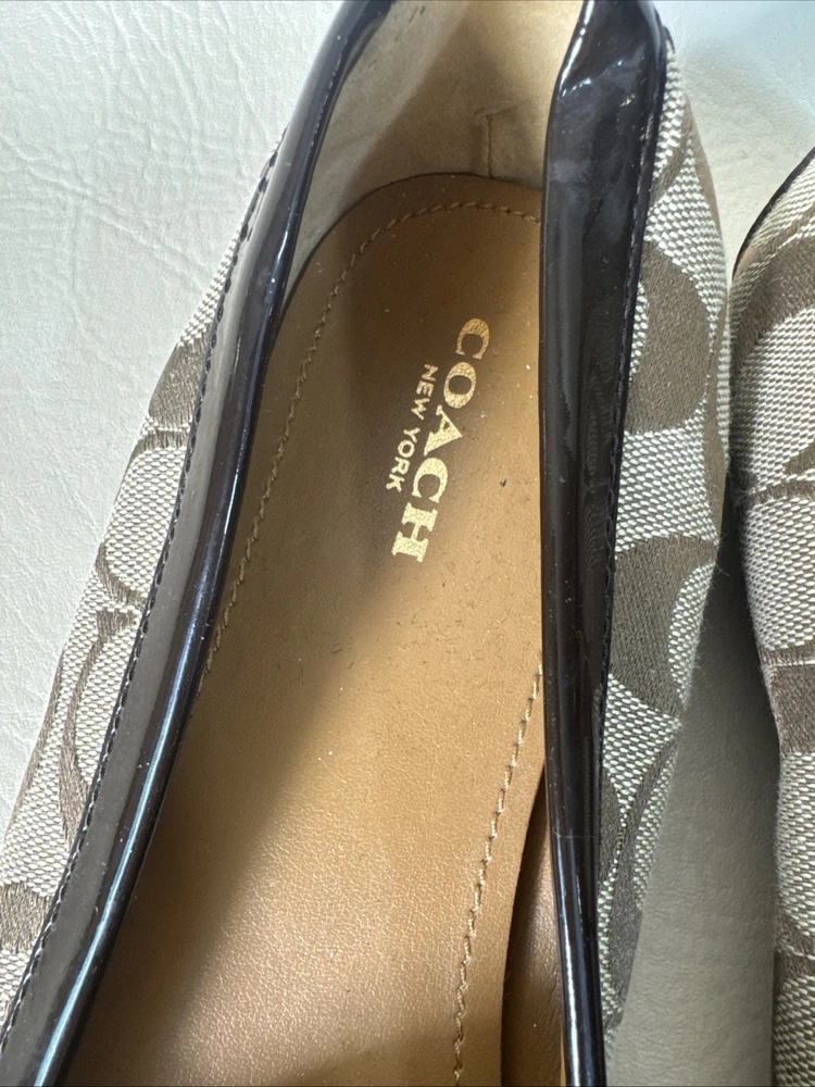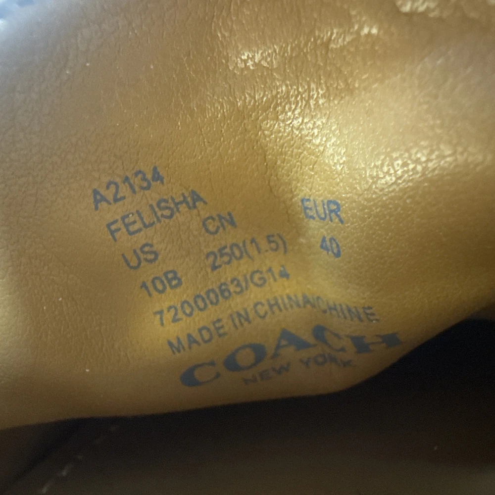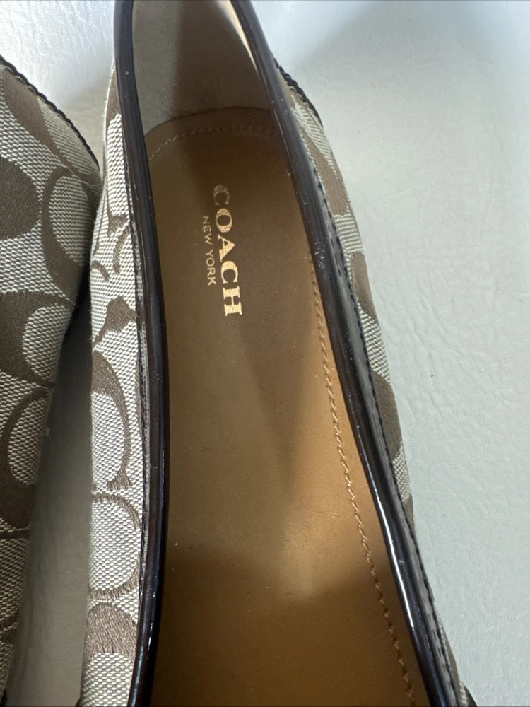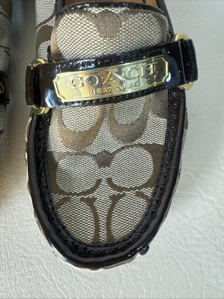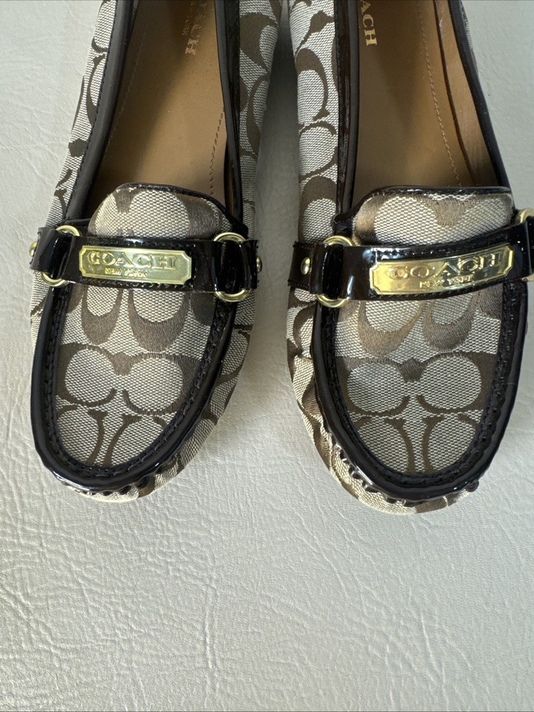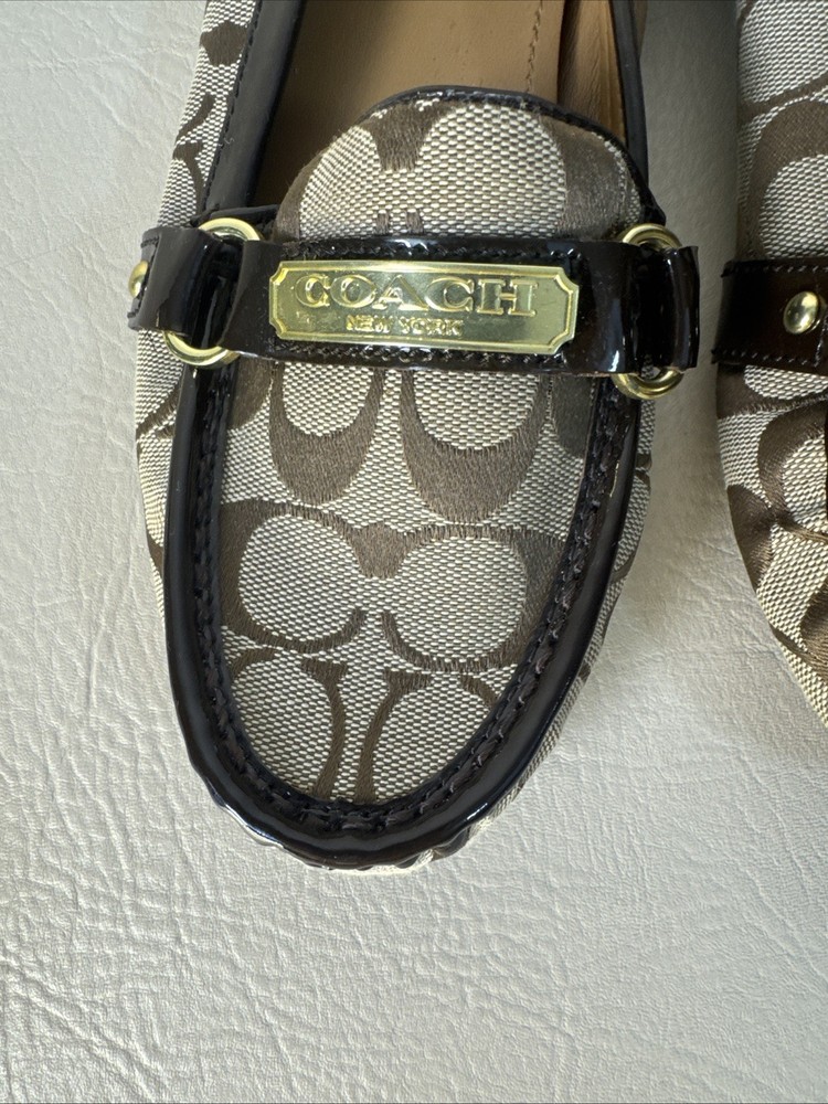 The Coach Women's Loafers Felisha A2134 in size 10B are a stylish and comfortable option for women looking for a flat shoe. Made with mixed materials, these brown loafers feature the signature Coach branding and are designed in a classic loafer style. Perfect for everyday wear or dressing up an outfit, these loafers are a versatile and fashionable choice for any woman's wardrobe. Pre-owned without original box. Hardly used. No damages. Please check the pictures carefully as part of the description. Feel free to ask questions if you need more information before you buy it. Thank you for your interest D-15