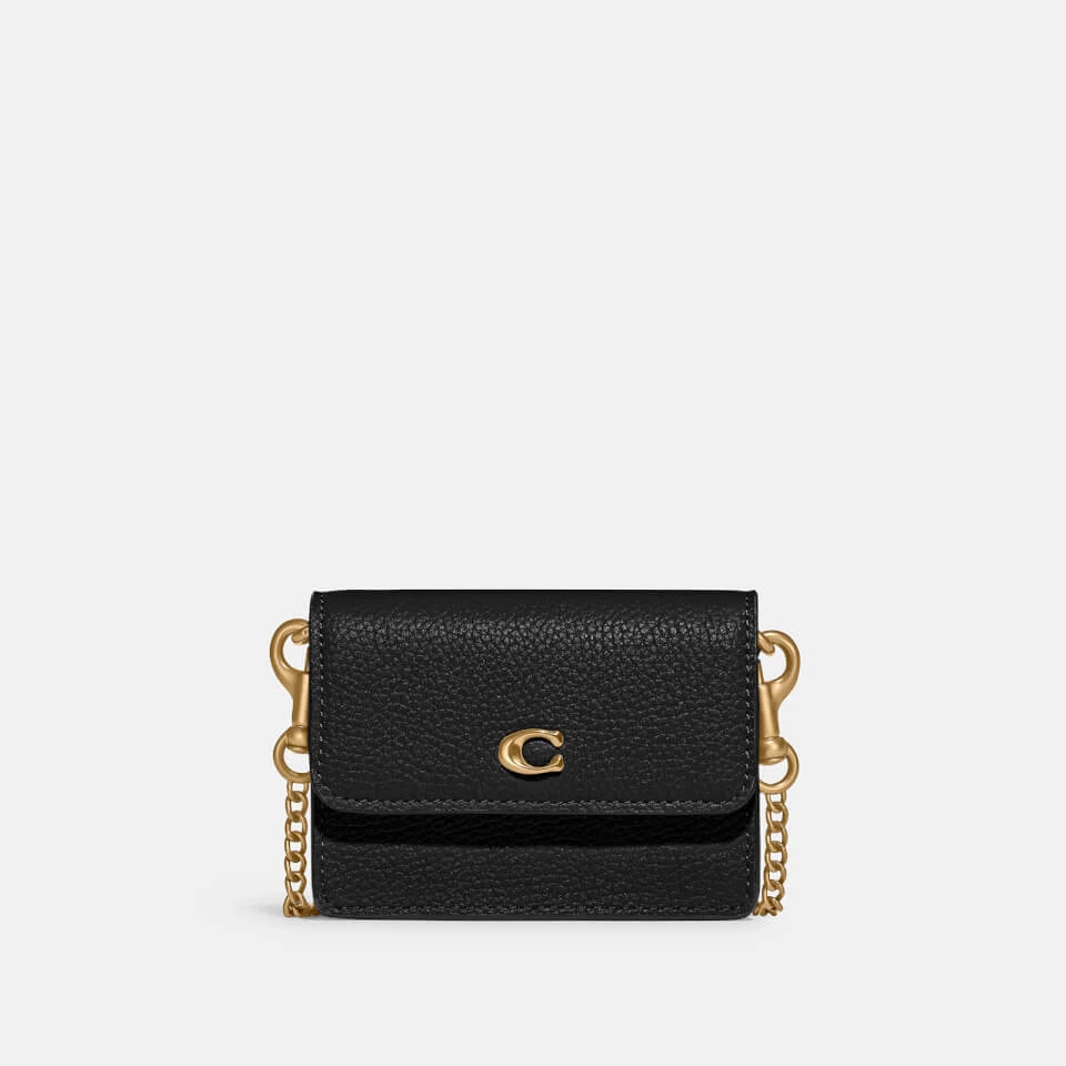 Coach Women's Pebbled Leather Half Flap Mini Crossbody Card Case Black