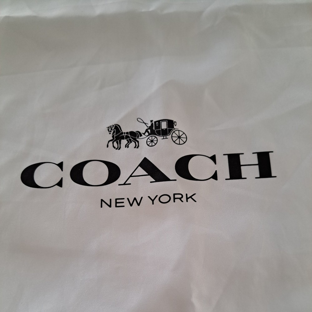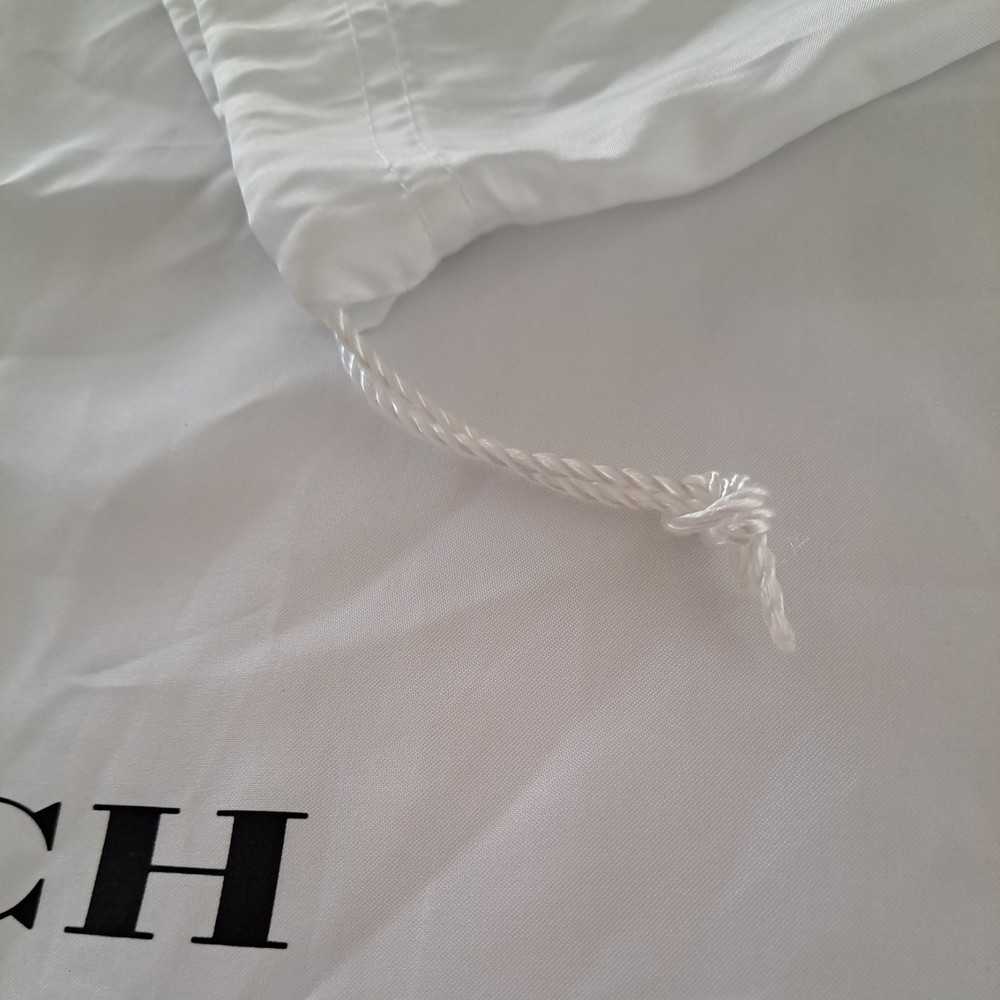The Coach New York Drawstring Dust Bag Storage Cover Bag in Chalk White is a stylish and practical accessory for your handbag, shoes or any other precious coach accessories Made from satin fabric with a drawstring accent, this dust bag is designed to protect your bag from dust and damage. It features a pouch design and comes in a size suitable for small to extra-large handbags. The Coach brand ensures quality and durability, making it a must-have for any fashion-conscious individual. Made in China, this dust bag is a must to protect your valuables