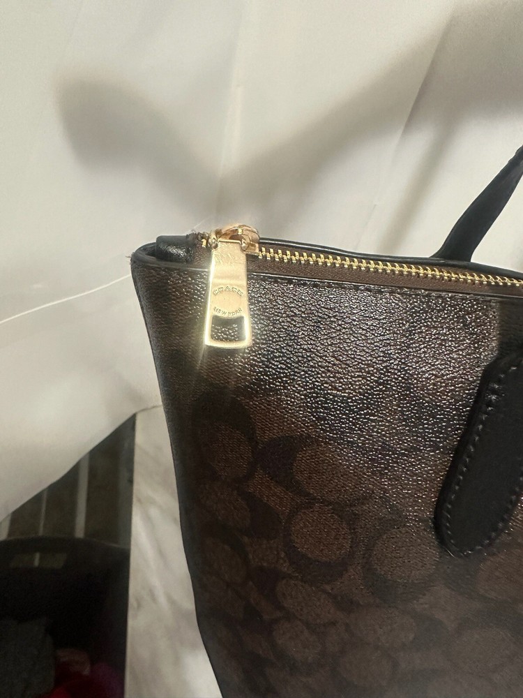 This Coach tote is a dream—luxe brown leather, chic gold accents, and a roomy interior with handy pockets. The zip-top keeps everything secure, and the fabric lining feels so premium. It’s stylish, practical, and in flawless condition—an absolute must-have for any handbag lover!