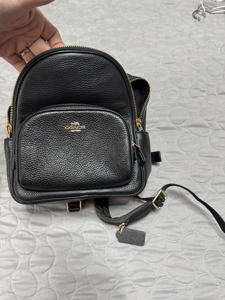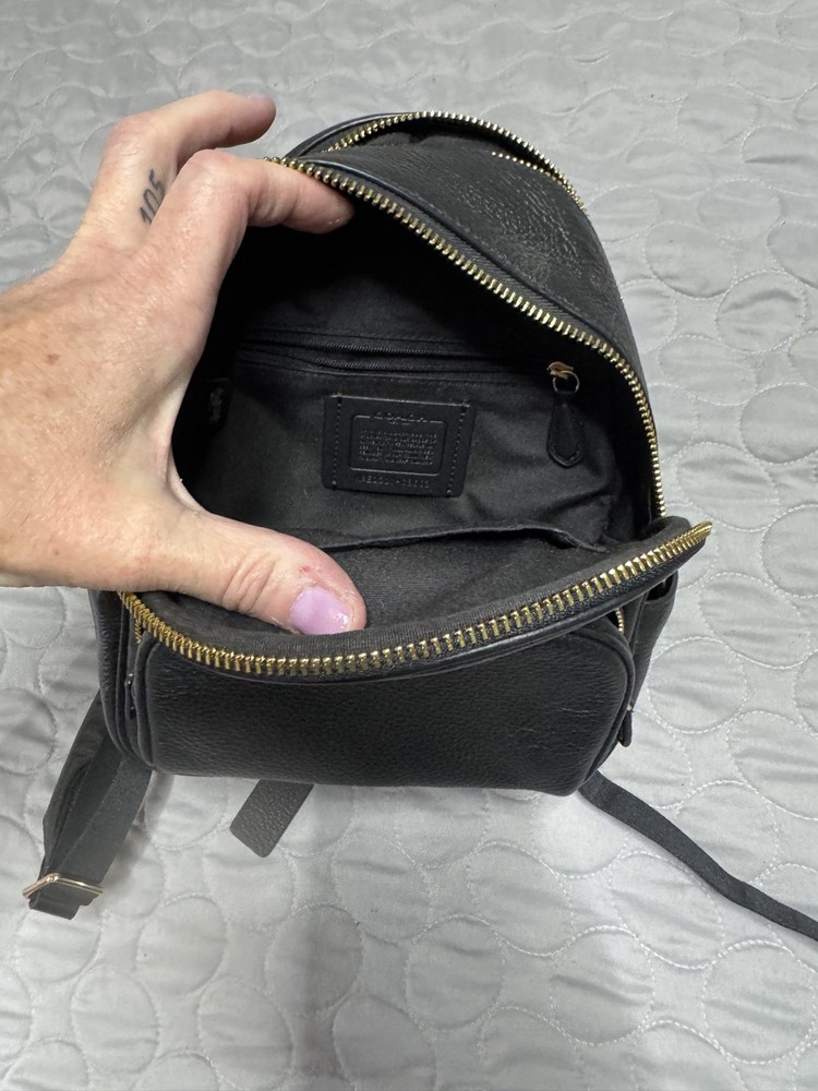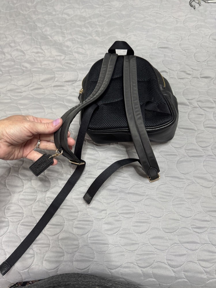 The Coach leather backpack is a stylish and practical accessory for women, perfect for everyday use or special occasions. Made of high-quality leather with a pebbled finish, this solid mustard backpack features a zip closure and adjustable black leather straps. The interior is lined with black fabric and includes a bag charm for added flair. With its designer theme and Coach branding, this backpack exudes sophistication and class, making it a must-have for any fashion-forward woman. Made in the United States, this backpack is a versatile and timeless piece that will elevate any outfit.