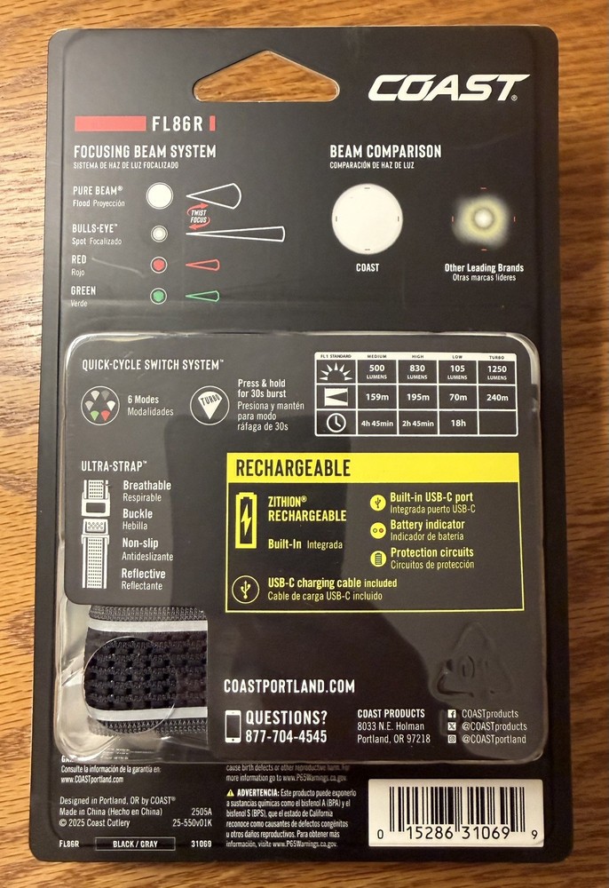 Hard to find high lumen thrower headlamps. This is perfect. Rechargeable battery as well. Direct access to white, red, and green without having to cycle through lots of modes.