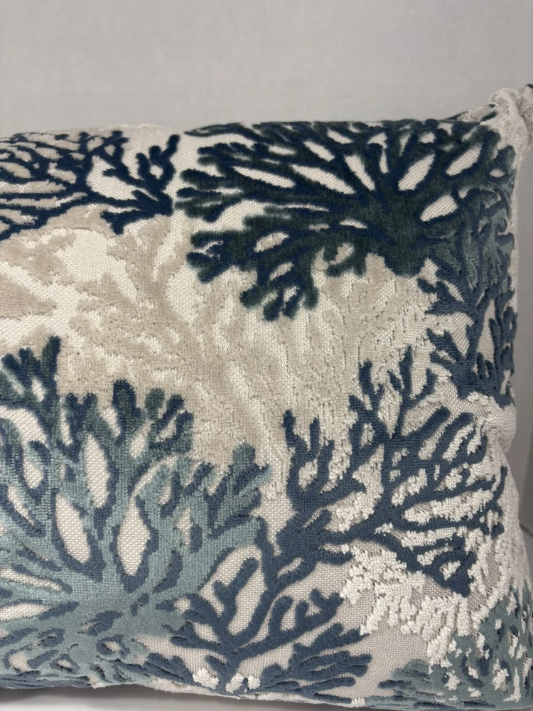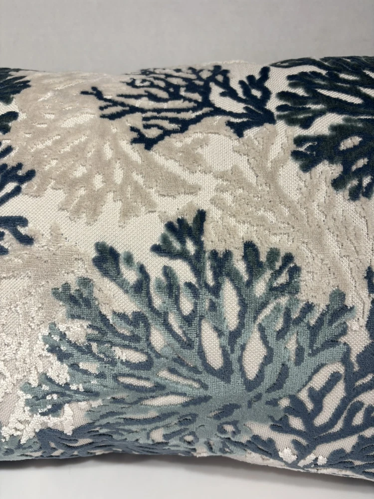 Add a touch of the beach to your home with this beautiful throw pillow featuring a coral pattern in a luxurious velvet material. The pillow measures 16 x 24 inches and has a zip closure for easy cleaning. It's perfect for decorating your office, porch, bedroom, living room, lounge, guest room, or patio. The pillow also has a textured feel, adding an extra level of comfort and style to your space. The nautical, coral-themed pillow is ideal for those who love the beach and want to bring a piece of it into their home.