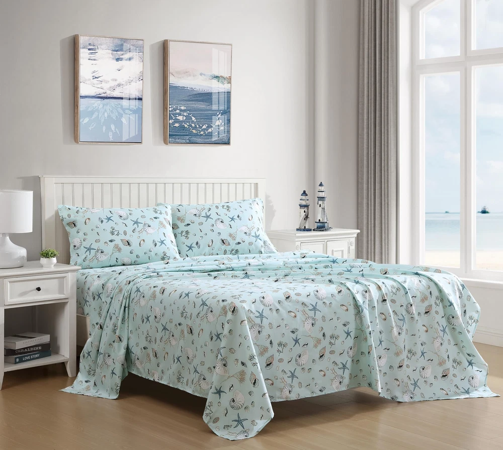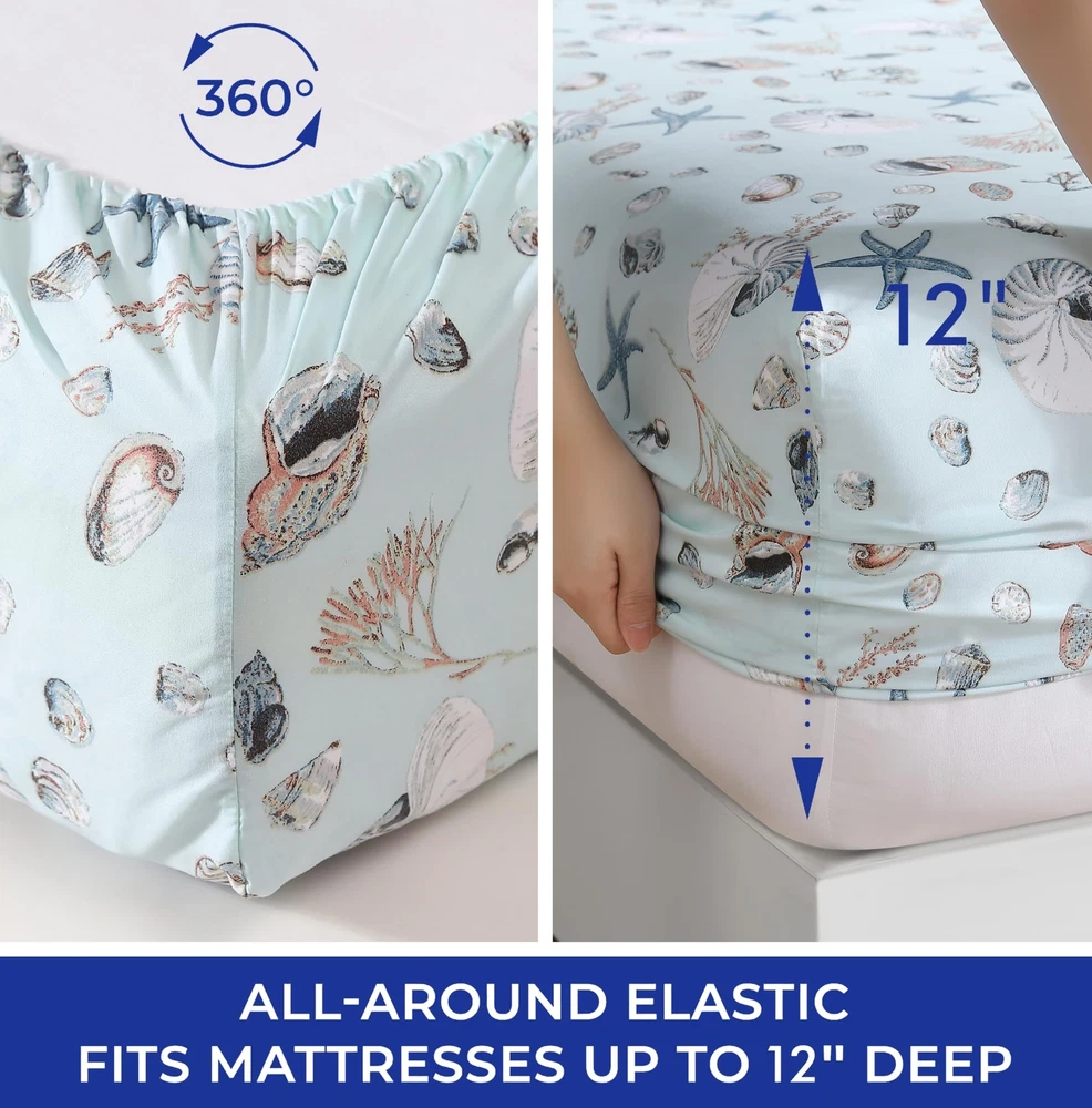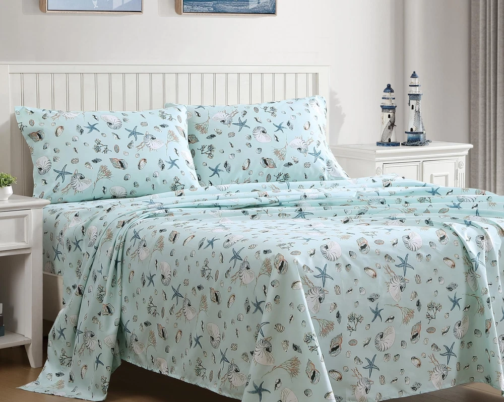 Coastal Print Microfiber Sheet Set, Soft, Comfy, 12" Deep Pockets, Twin, Ocea...
