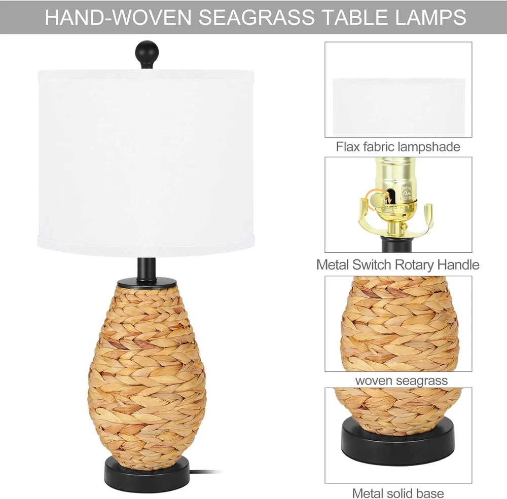 Store New Arrivals Add to Favorite View Feedback Contact Coastal Table Lamps Set of 2, Retro Natural Seagrass Rattan Woven 24" Bedside Lamp, for Bedroom Living Room Home Office Desk Nightstand Table Lamp Description Item model number CHENHUI 210812 Light Source Type LED Style Coastal Number of Items 1 Power Source Corded Electric Number of Light Sources 2 Control Method Touch Batteries Included? No Lighting Method LED Maximum Compatible Wattage 60 Watts Number of Pieces 2 Room Type Office, Living Room Lamp Type Table Lamp Product Dimensions 11"D x 11"W x 24"H Material steel, Seagrass Included Components Bulb Indoor/Outdoor Usage Indoor Batteries Required? No Item Weight 7.84 pounds Connectivity Technology USB Special Features Corded Special Feature Corded Part Number 2108122201 Shade Color White Mounting Type Tabletop Color White Wattage 60 watts Is Cordless? No Base Material Alloy Steel Is Waterproof False Shape Bulb Voltage 110 Volts Recommended Uses For Product Decoration, Reading Shade Material Linen Switch Type Push Button Set of 2 lamps. Each table lamp is 24" high overall. Bases are 6" wide. Shade color and shape type- White drum , linen hardback lampshade. Shade - 11inch top x 11inch bottom x 9inch diagonal height. Easy Assembly: The lampshade needs to be assembled. Simple to assemble with accompanying assembly manual. natural Seagrass rattan is wrapped around a steel frame ,hand-woven by skilled artisans. because of the natural material, color and pattern will vary. but pairs especially well with coastal and cottage rustic decor. Safe Choice for you: The cord and plug of set of bedside table lamps are UL listed, be nationally recognized for its standard of safety. ON/OFF Push Type, uses a medium base light bulb, 60 watt max, Light bulbs not included. natural Seagrass-embellished table lamp creates a modern take on this coastal classic. natural Seagrass rattan bases organically inspired design ,simultaneously emotes seaside glamour and luxury living. This set lamp will bring a touch of glamorous style to your living room or bedroom. ABOUT US We offer the best prices around on high quality products. Our E-store includes media such as books, movies, music and games while offering electronics, toys, sporting apparel, clothing, tools, general home, garden items and more. SHIPPING We are always working hard to ensure your package arrives as soon as possible. Please understand that some factors like weather, high postal traffic, and the performance of shipping companies are outside of our control. We offer free shipping to the lower 48 states and ship within 2 business days of payment, usually sooner. We do not accept P.O. Boxes. Please provide a physical address. For shipping outside of the continental USA, we only use eBay's Global Shipping Program.The item is shipped to KY and then sent to the rest of the world. International customers are responsible for all duties and taxes. Continue to check out in order to calculate costs for shipping the item to your country. Messages regarding eBay's Global Shipping Program MUST be directed at eBay EXCLUSIVELY. RETURNS We offer a 30-Day Return Policy on items which you are not completely satisfied with. You have the option for a full-refund or an exchange of the item. No returns are available on items shipped outside of the USA. PAYMENT We accept PayPal. CONTACT US This page content is yet to come Please ad us to your favorite seller and visit again later Thank You CUSTOMER SATISFACTION We try our very best to make sure every customer is completely satisfied. If there's a problem, message us! We're happy to help. WE ACCEPT Copyright © 2021 AutoDS. | All Rights Reserved