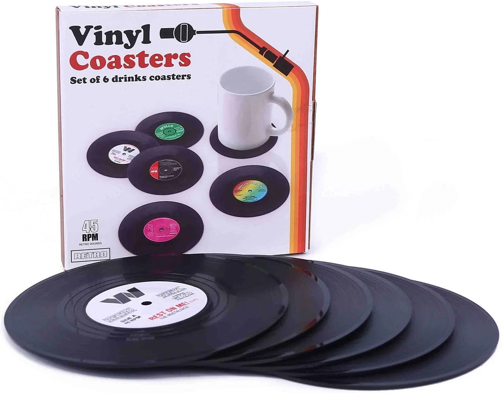 Coasters for Drinks with Gift Box - Set of 6 Colorful Retro Vinyl Black Product Details Color: Black Material: Plastic Brand: Ankzon Shape: Round Product Care Instructions: Hand Wash Only Is Dishwasher Safe: Yes Product Dimensions: 4.2"L x 4.2"W Manufacturer: Ankzon Item Weight: 1.6 ounces Item model number: AKCP Is Discontinued By Manufacturer: No ☑️ Perfect for Muisc Lover--Set of 6 in a gift box, they look like real vinyl records, every detail, cute and cool, great gift for music lovers and perfect for 80s parties. ☑️ Non-Slip Design--With a small rubber disc on the bottom, that makes sure that your table will be protected and non slip, at the same time fun and creative ☑️ Focus of discussion--Protect the surface of table from damage while putting hot or cold drinks on the table, Use the coasters when you serve some hot and cold drinks and it will make your guests feel nostalgic. ☑️ PERFECT GIFT - Nice package, perfect gifts for house warming, birthday, fathers' day mothers' day, christmas, great presents! ☑️ Perfect for Muisc Lover Set of 6 in a gift box, they look like real vinyl records, every detail, cute and cool, great gift for music lovers and perfect for 80s parties. ☑️ Non-Slip Design With a small rubber disc on the bottom, that makes sure that your table will be protected and non slip, at the same time fun and creative ☑️ Focus of discussion Protect the surface of table from damage while putting hot or cold drinks on the table, Use the coasters when you serve some hot and cold drinks and it will make your guests feel nostalgic. ☑️ GUARANTEE Protect the surface of table from damage while putting hot or cold drinks on the table, Use the coasters when you serve some hot and cold drinks and it will make your guests feel nostalgic.. ☑️ PERFECT GIFT Nice package, perfect gifts for house warming, birthday, fathers' day mothers' day, christmas, great presents!.